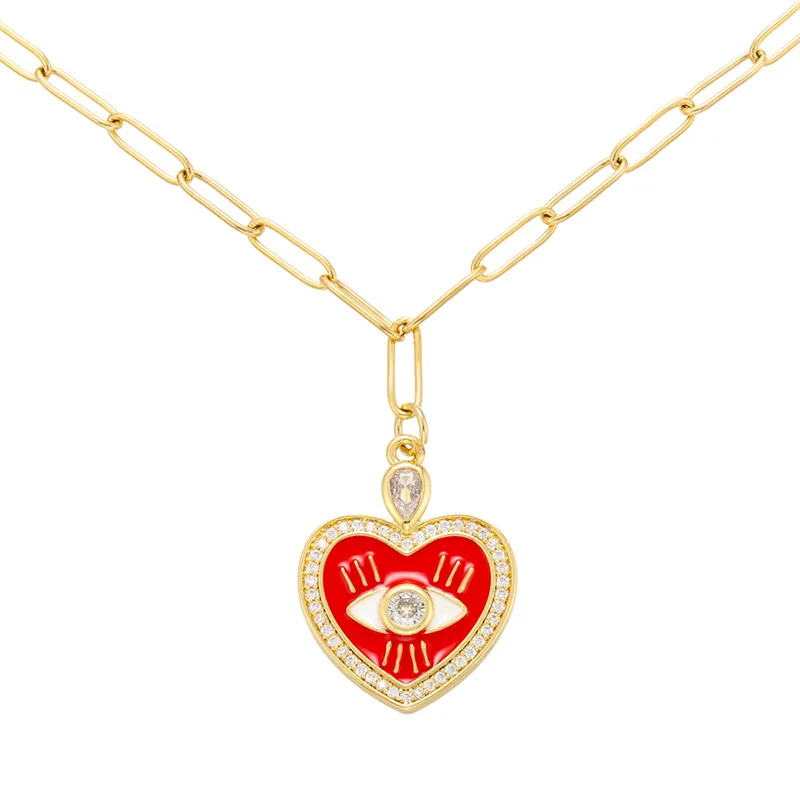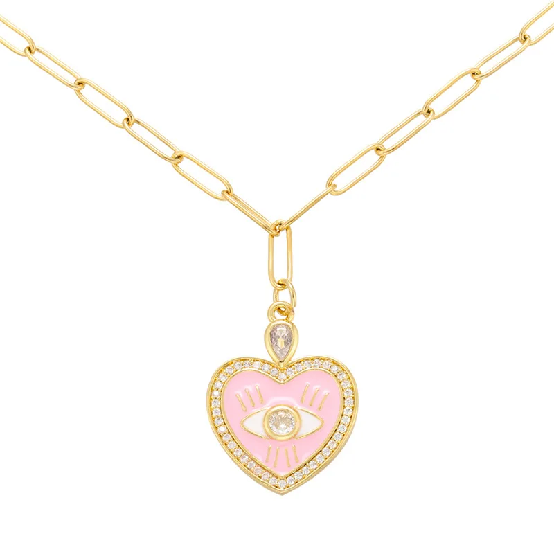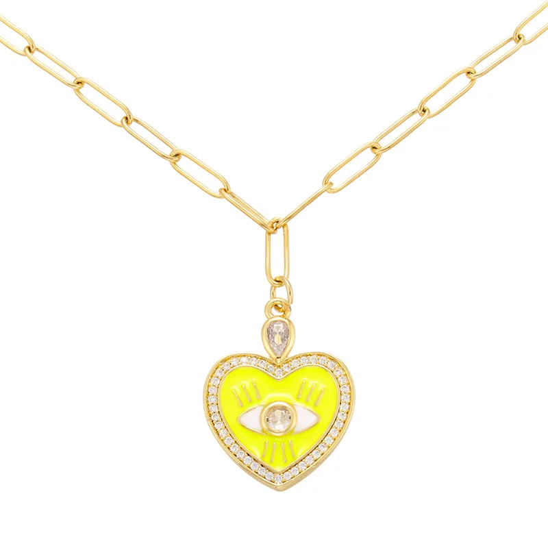 Ожерелье QMHJE с эмалированным кулоном в виде сердца от сглаза, женское колье, Золотая цепочка, геометрические толстые неоновые ожерелья желтого цвета на юбилей