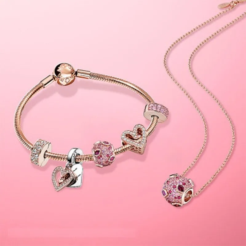 Женский браслет из серебра 925 пробы, с бусинами-шармами