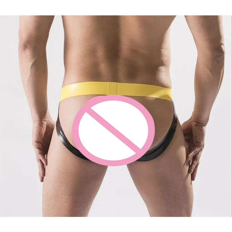 Мужские латексные трусы ручной работы, желтое резиновое нижнее белье