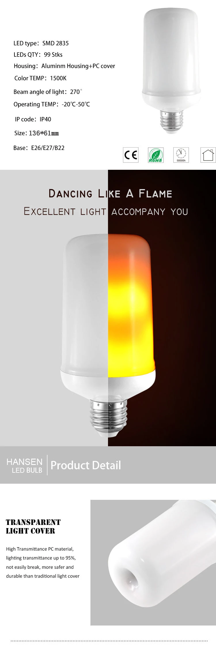 2021 E27 Светодиодная лампа с эффектом пламени 9W огненный эффект с...