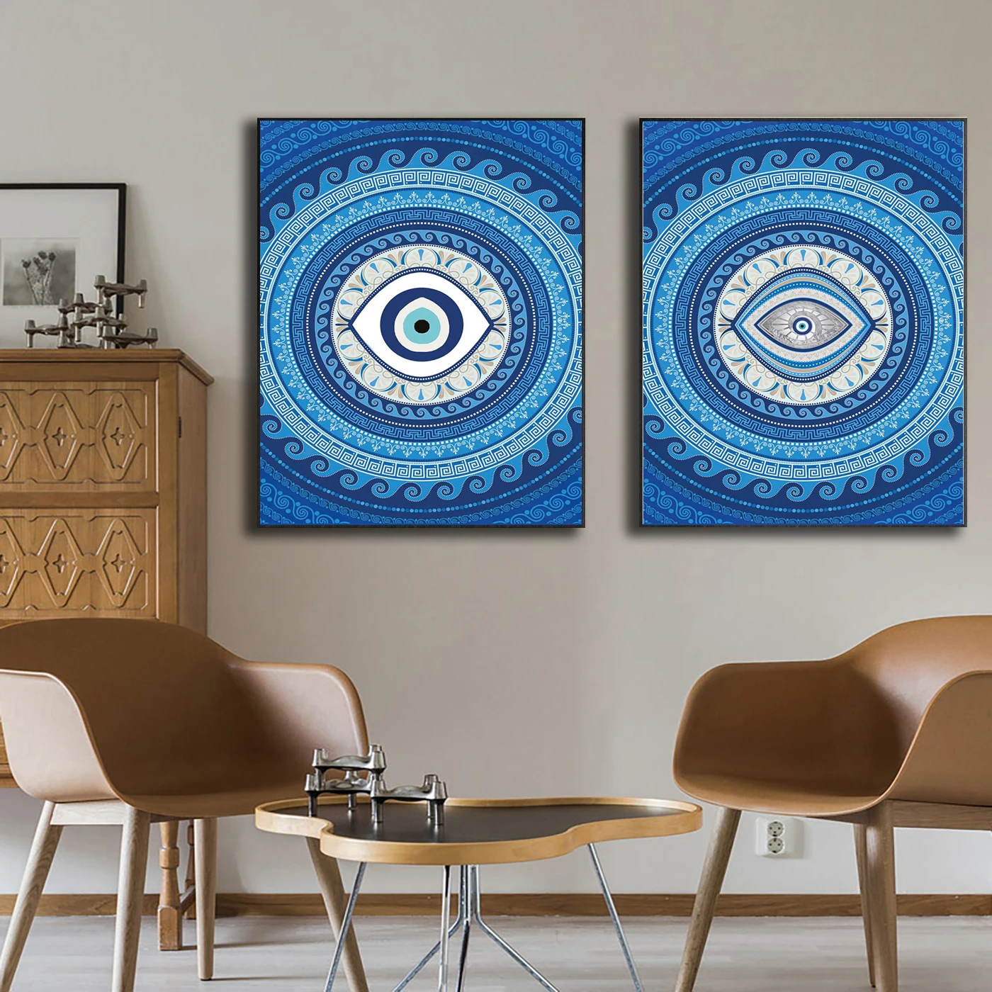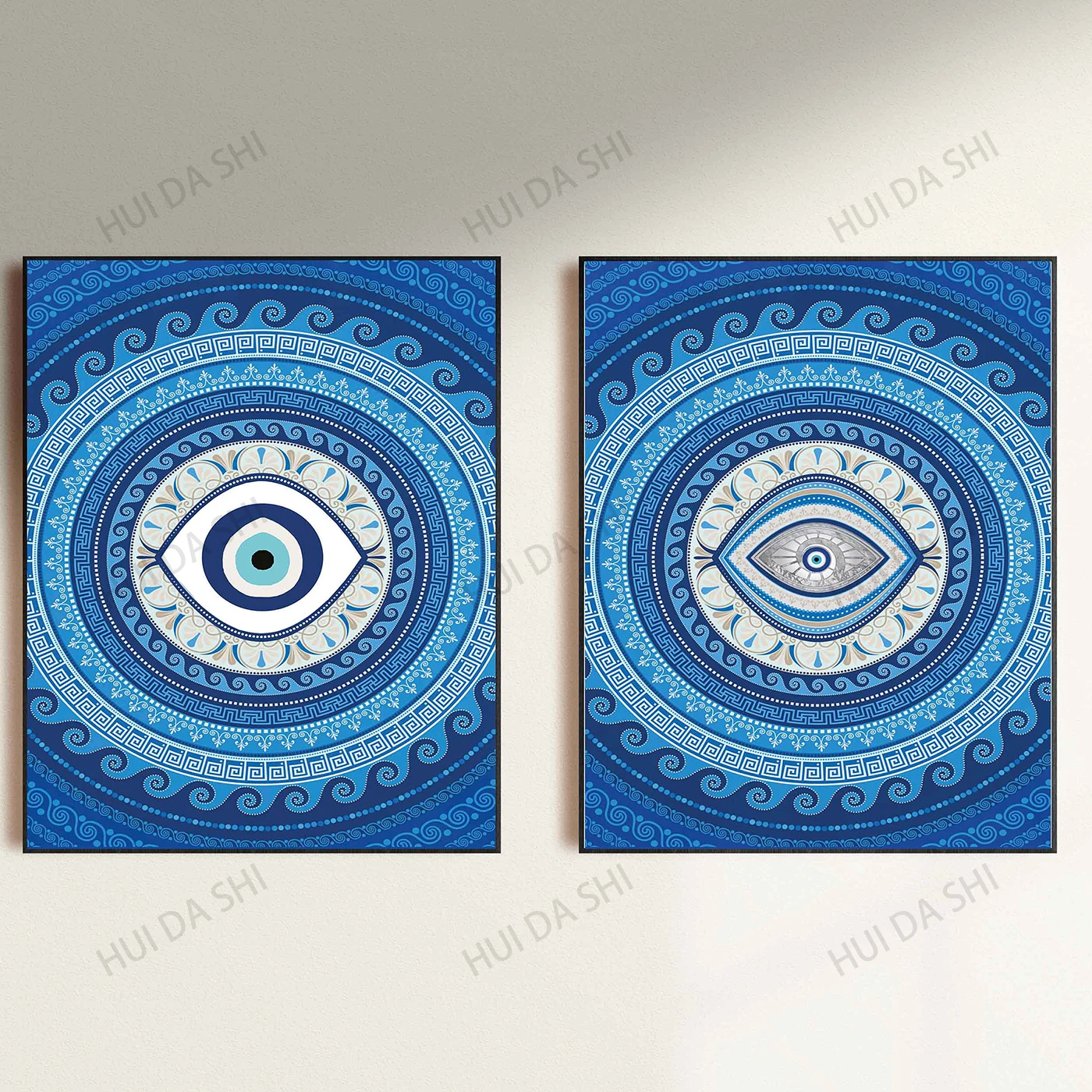 Плакат с изображением двойного сглаза-турецкий и греческий сглаза-Nazar-синий художественный плакат-печать на холсте