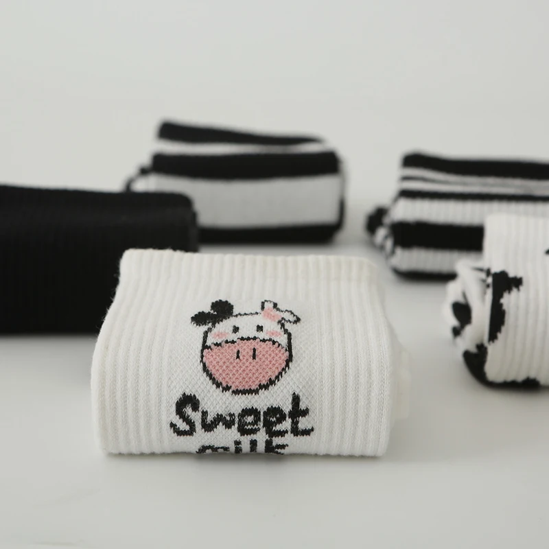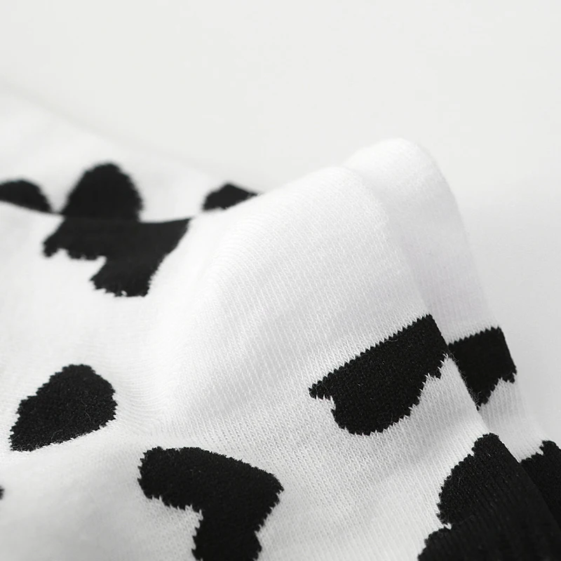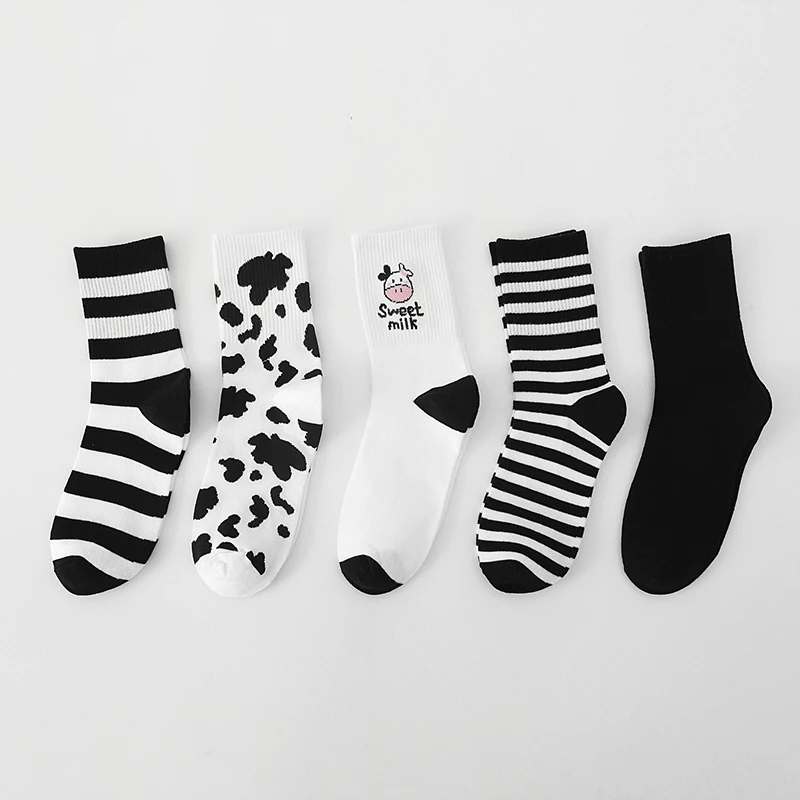 Носки средней длины в стиле ретро; Черно-белые носки из коровьей кожи; Хлопковая ткань; Красивый дизайн; Классический цвет.