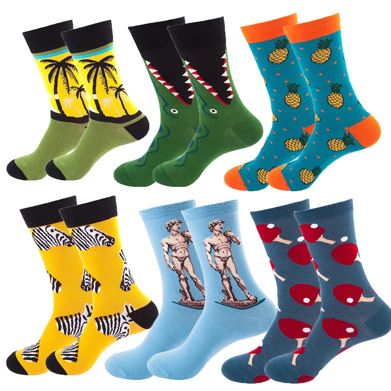 1 пара мужских носков из чесаного хлопка, Мультяшные животные, птиц...