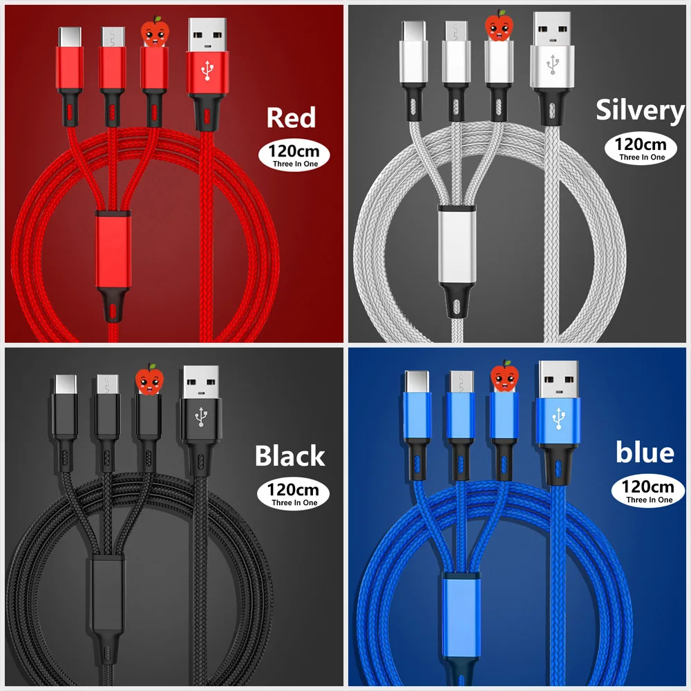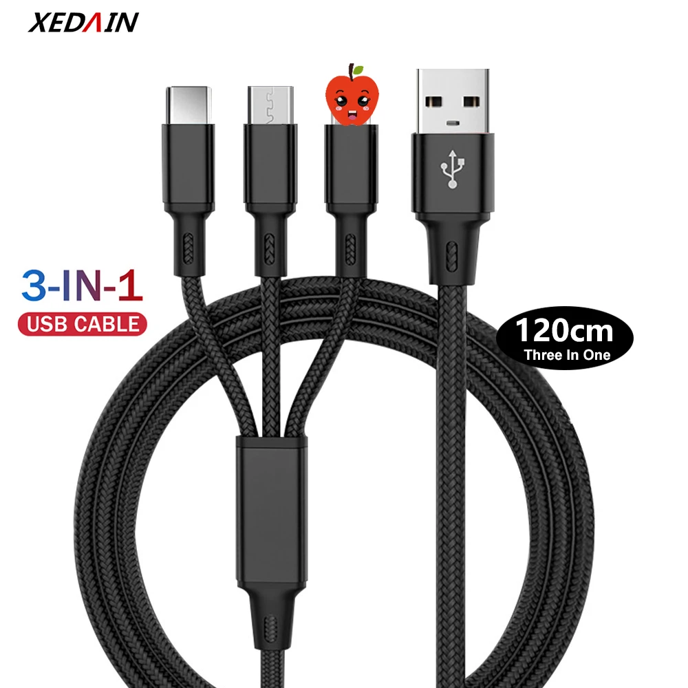 Зарядный USB-кабель 3 в 1, кабель для быстрой зарядки для ipad pro, iphone 12 Pro Max, Xiaom Redmi Note 8, Samsung S9 Plus