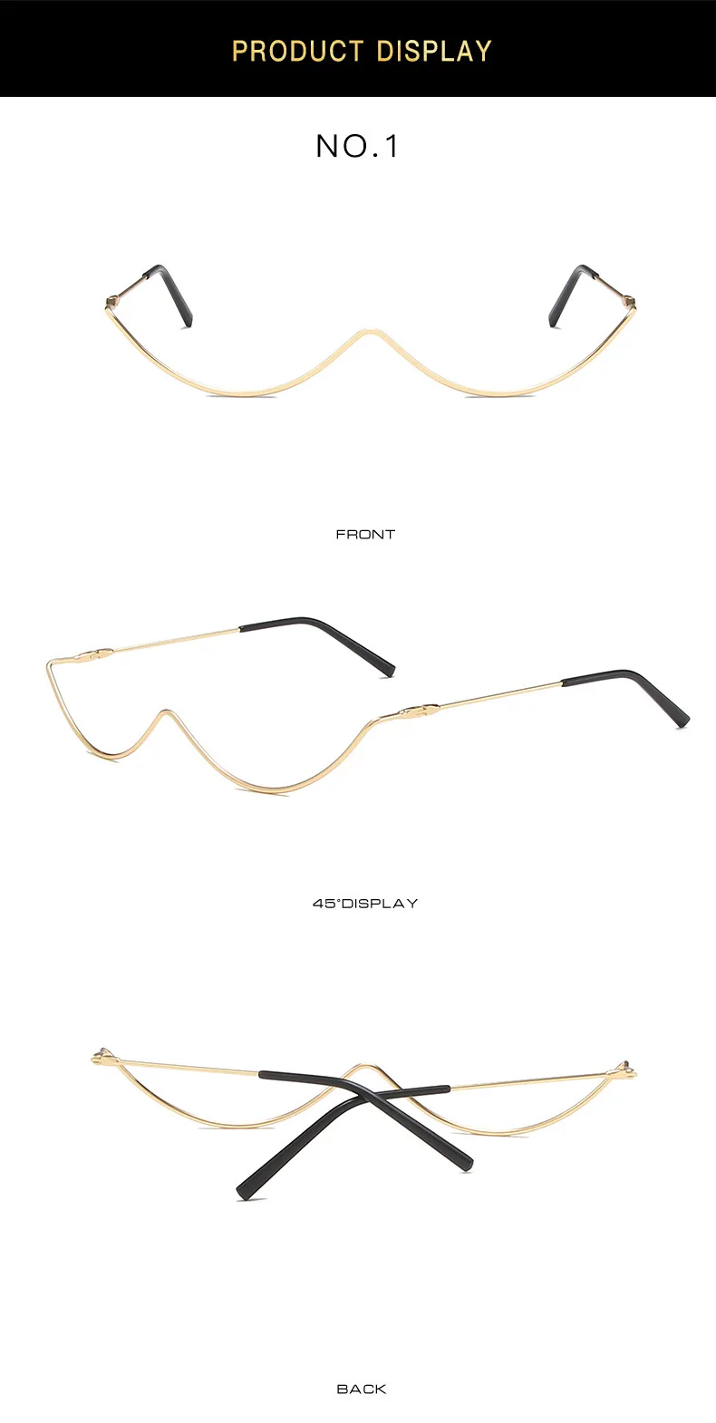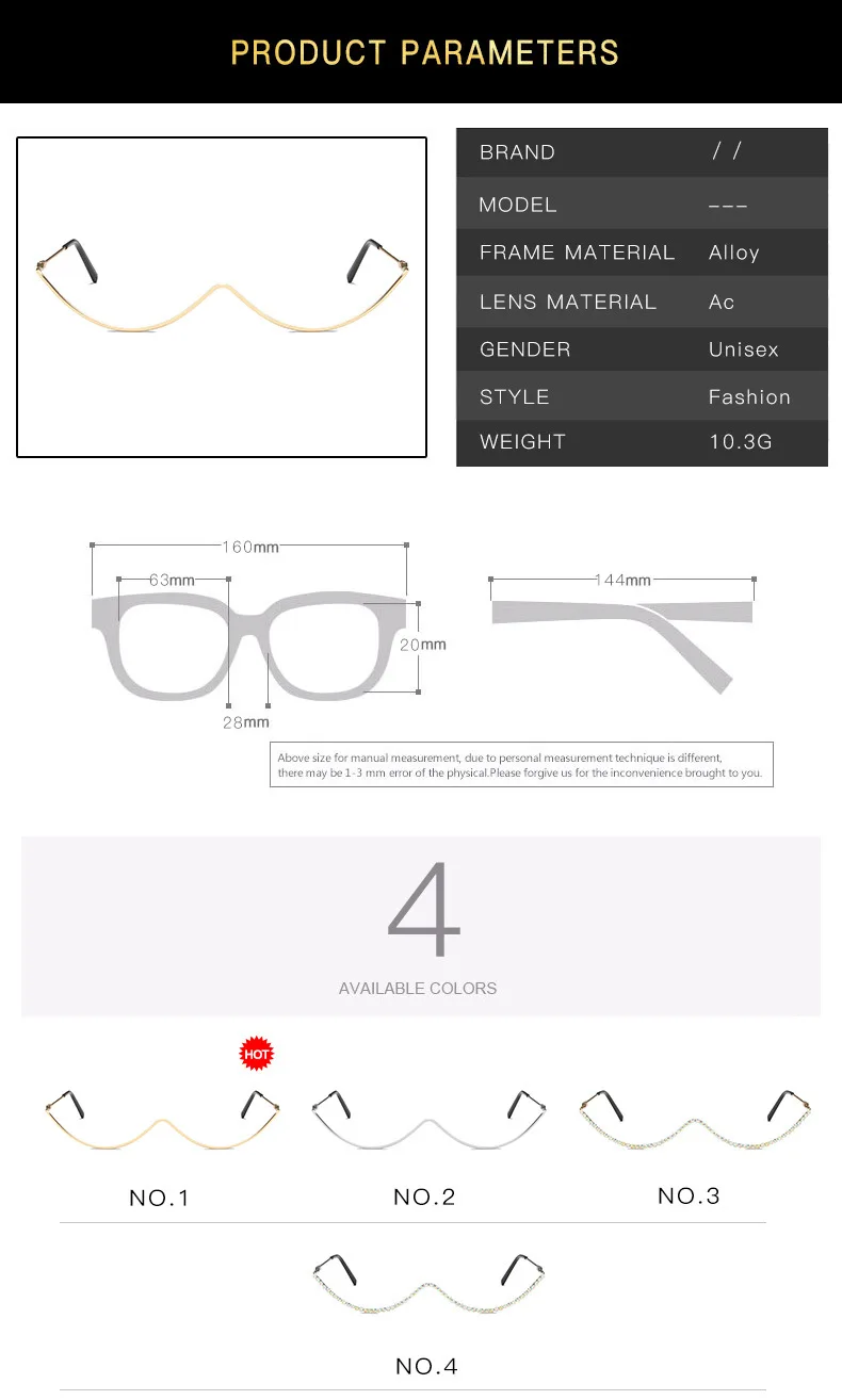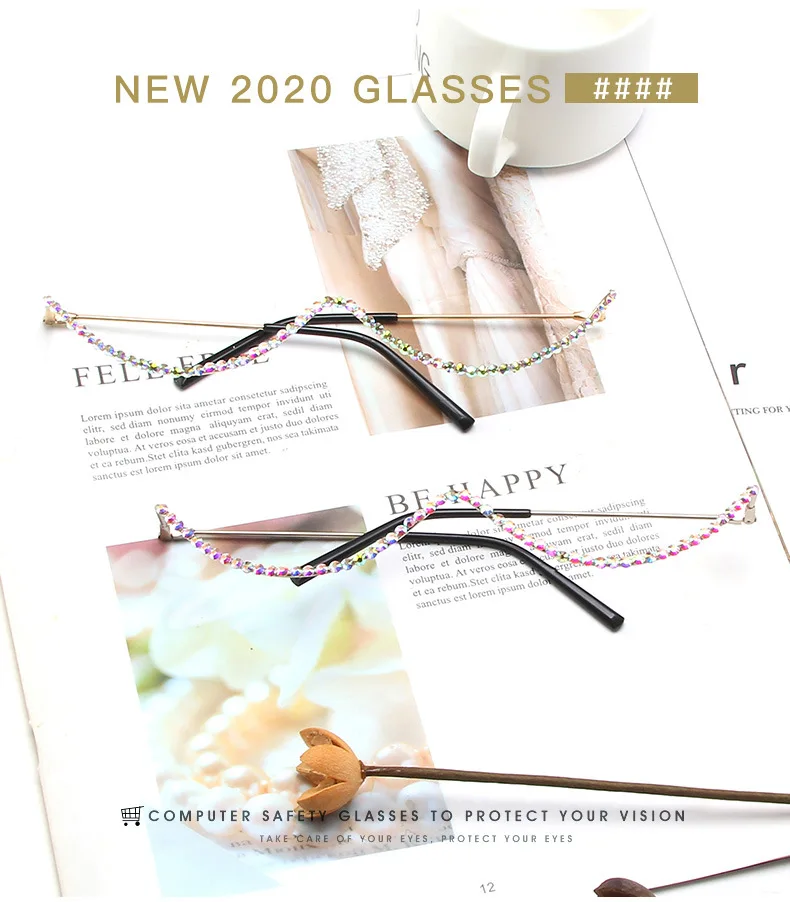 Моды алмаза оправы для очков для женщин Роскошные ювелирные изделия с плоскими стеклами и половинной рамкой солнцезащитные очки женщин Стразы Очки Волна рамки украшения для очков