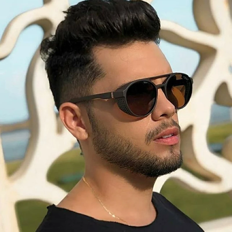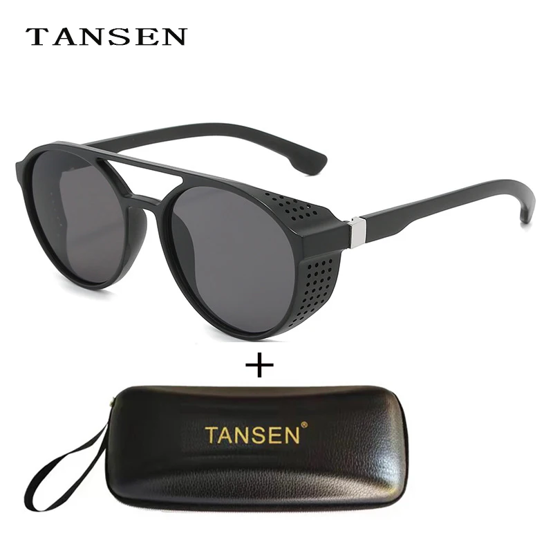 Мужские трендовые солнцезащитные очки TANSEN, круглые ветрозащитные солнцезащитные очки в стиле стимпанк для взрослых, дорожные солнцезащитные очки в стиле ретро с футляром