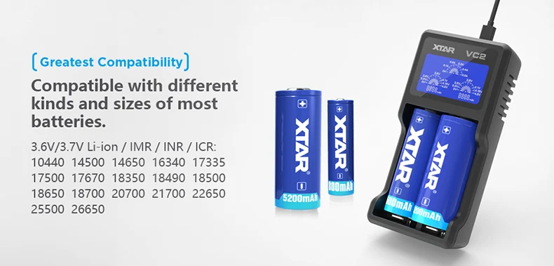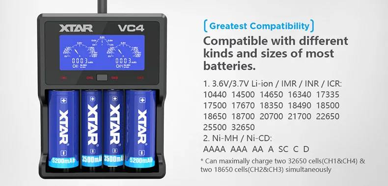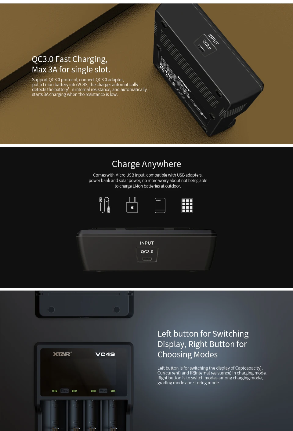 Зарядное устройство XTAR 18650, VC4S, VC2, VC4, D4, быстрое зарядное устройство с дисплеем, 1,2 в, 3,7 в, литий-ионный аккумулятор 21700, 20700, 26650, 18650, 18650, зарядное устройство