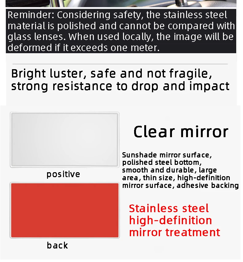 Напоминание: Учитывая безопасность, материал из нержавеющей стали нельзя сравнить со стеклянными линзами. Это только для частичного использования, и изображение будет деформировано, если оно превышает один метр.