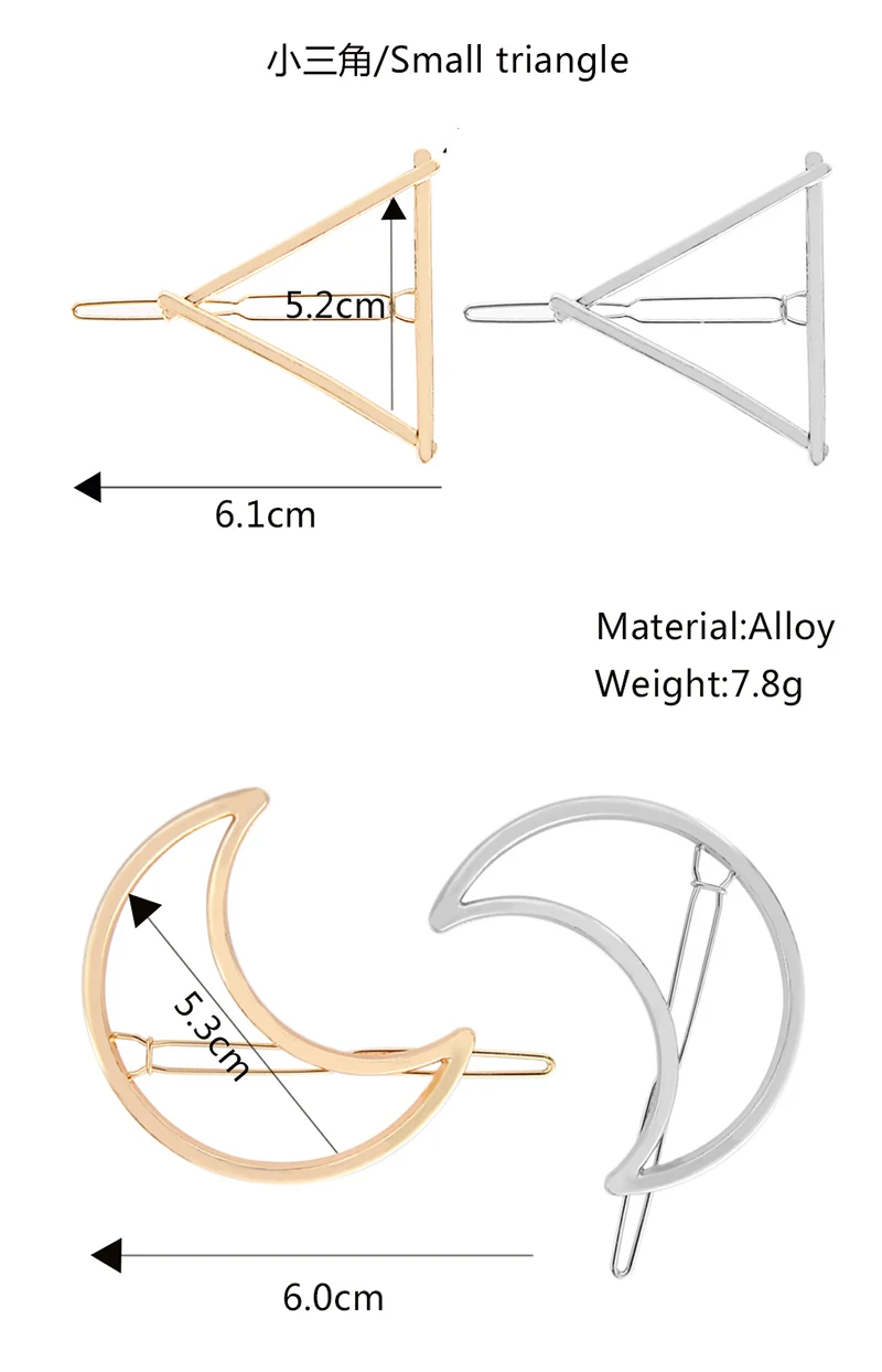 Заколки для волос женские, модные геометрические, треугольные, луна