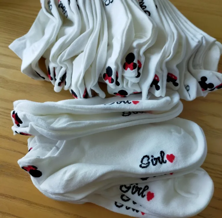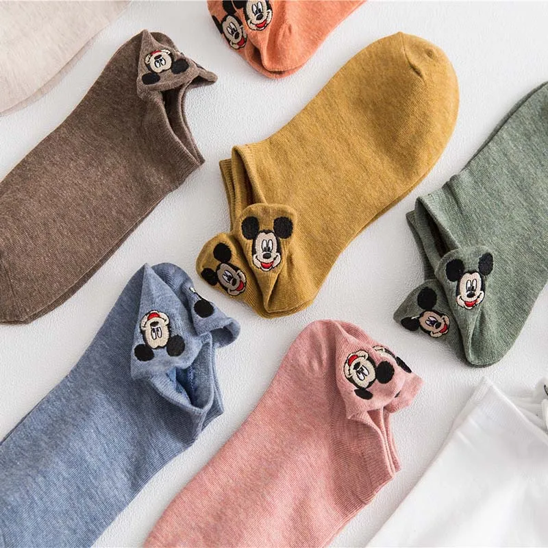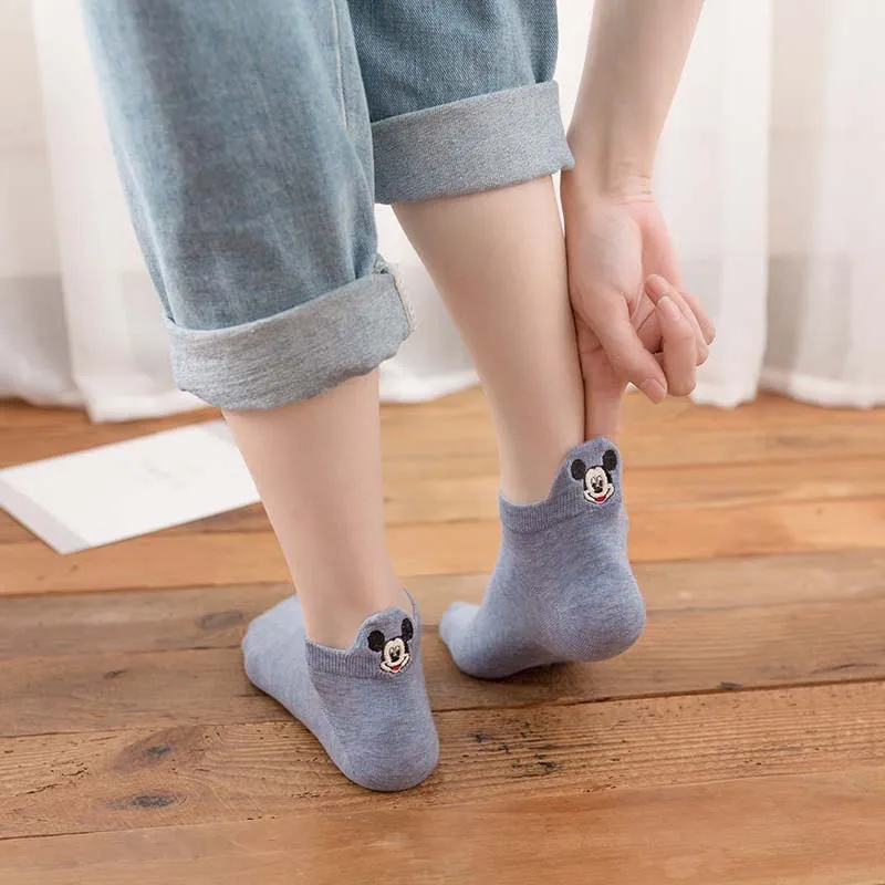 4 паралот с коротким голенищем; Носки-Башмачки из мультфильма вышивка Мышь ботильоны Для женщин хлопковые носки с низким вырезом тонкие Размеры; Большие размеры 36-40