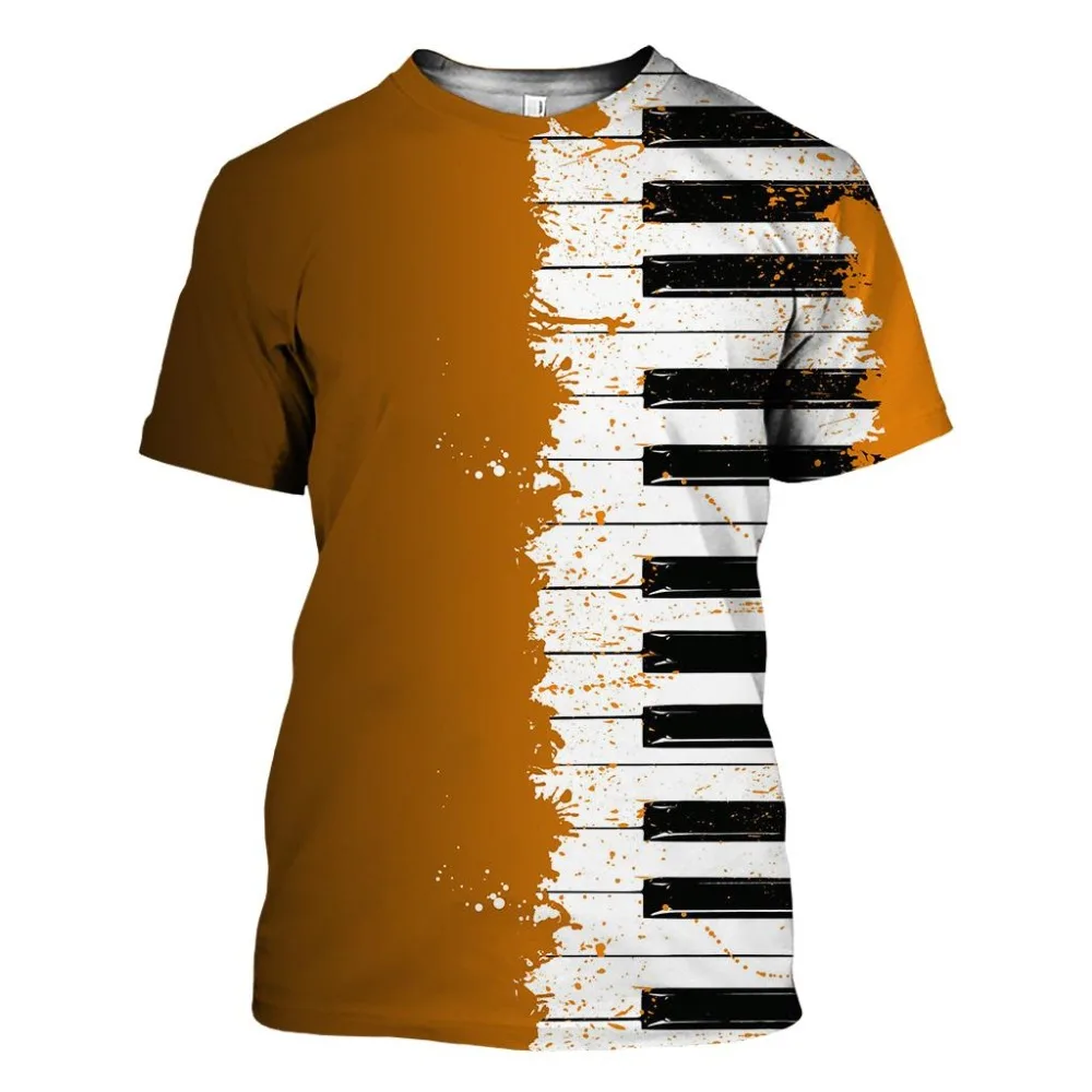 Футболка мужская с 3D-принтом музыкального пианино, Модный повседне...
