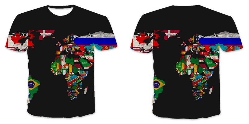 Мужская футболка с 3D-принтом, лето 2021, с картой мира, модная пов...