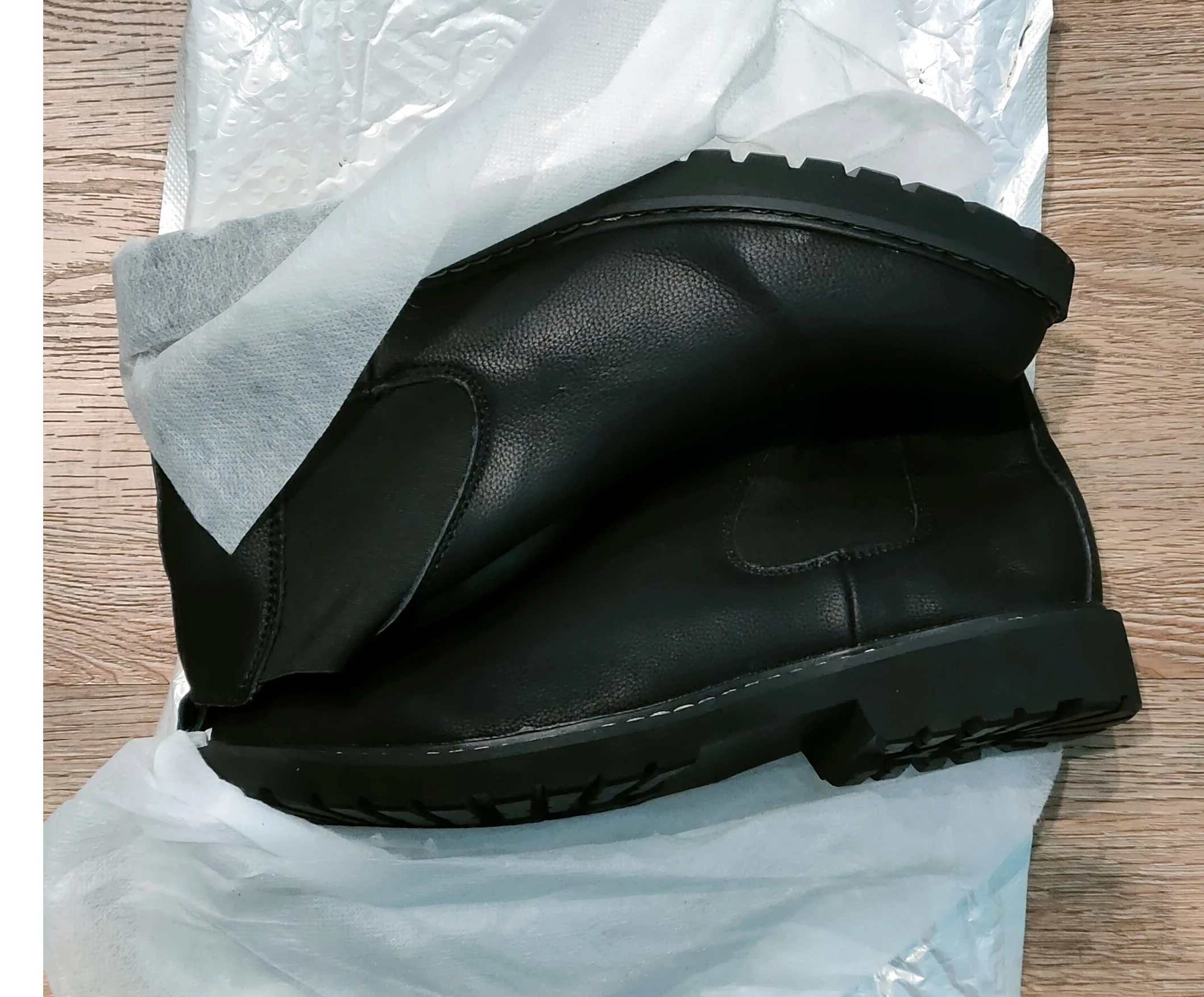 Одноразовые. Кожзам. Доставили за 15 дней. На мой 41 размер 9 номер пришелся впору. По краям подошвы следы клея. Под левой ступнёй чувствительно упирается ребро перехода от каблука к подошве. Последняя из тонкой резины. На острые камни наступать нельзя - порвётся. С собакой гулять на сезон должно хватить...