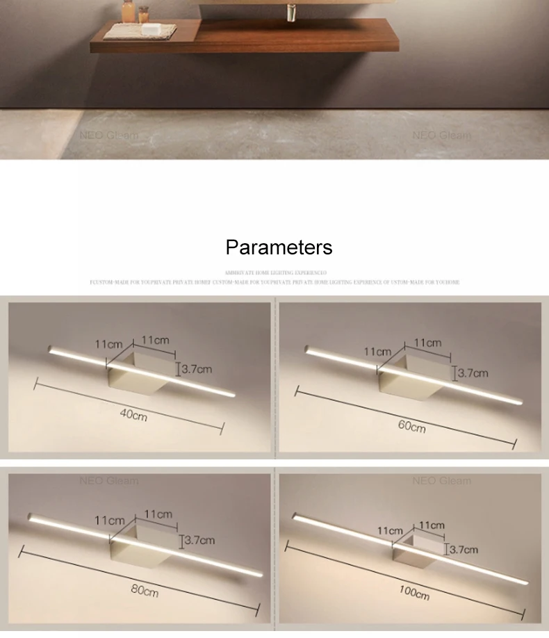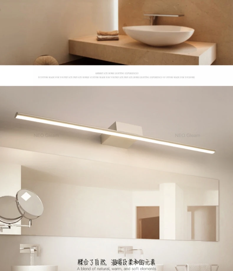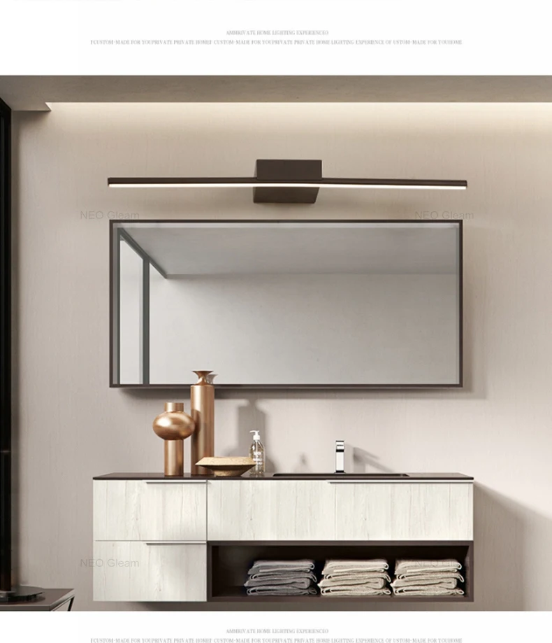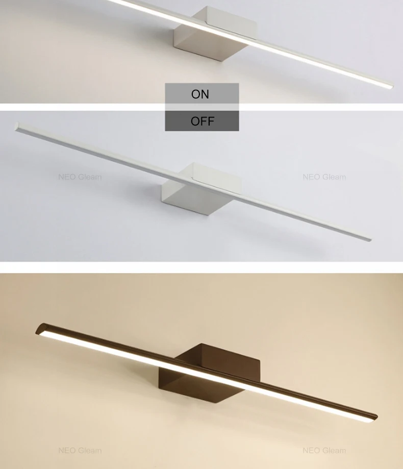Современный зеркало с подсветкой Анти-туман светодиодный настенный светильник черныйбелый 0,4-1,2 м минимализм Ванная комната огни туалетный столиктуалетВанная комната лампы