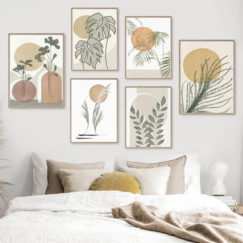 Boho Monstera бамбуковый лист солнце абстрактная настенная Картина на холсте скандинавские постеры и принты настенные картины для декора гостиной
