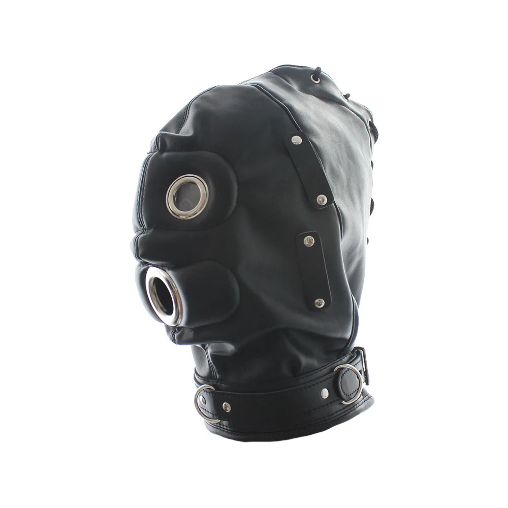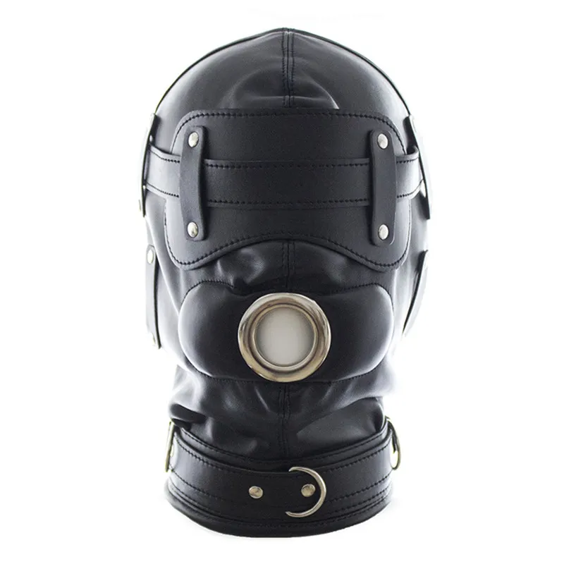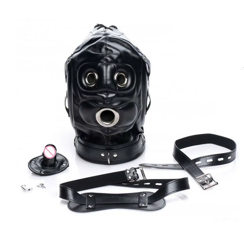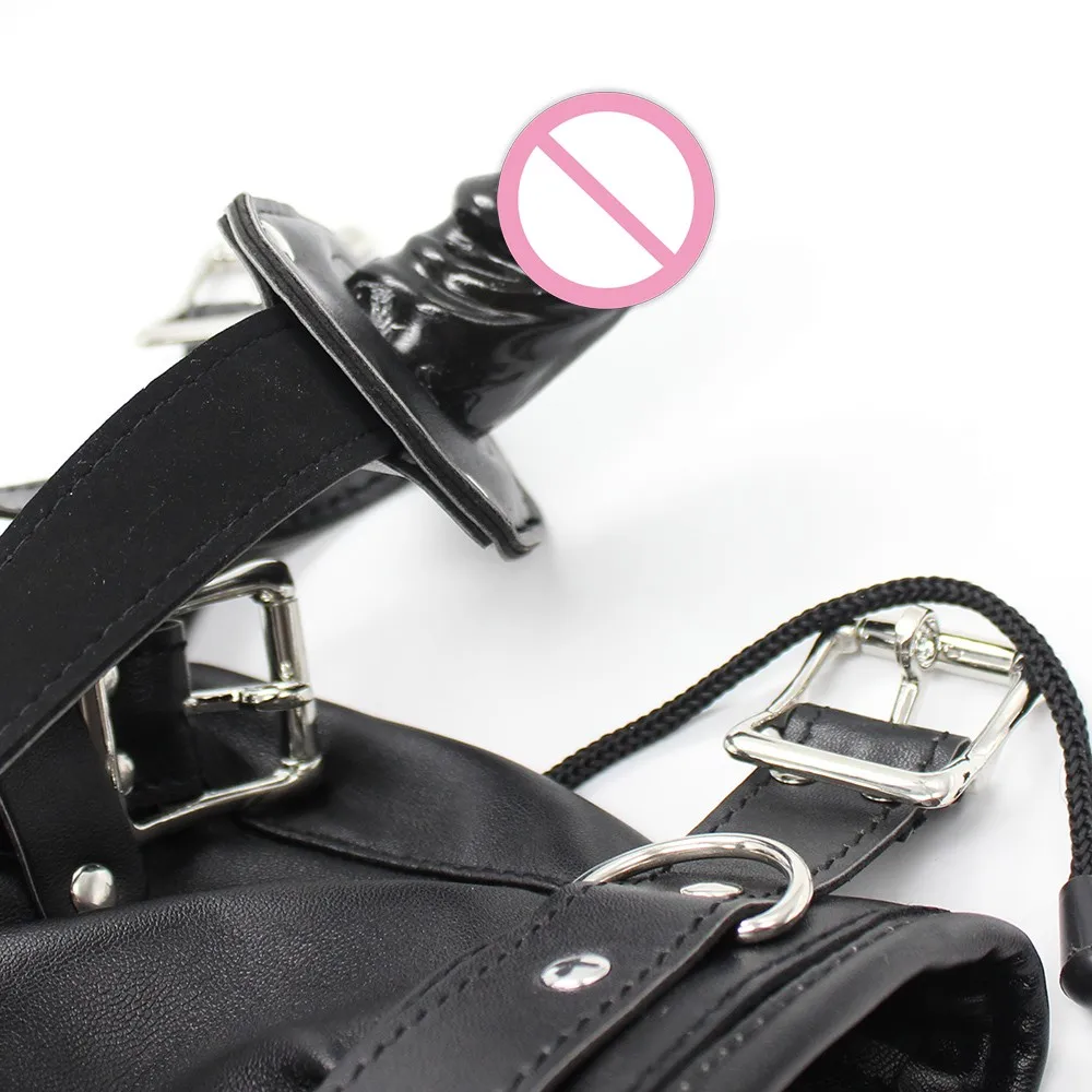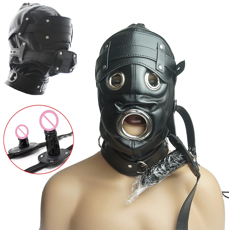 Капот из искусственной кожи рабство с фаллоимитатором кляп, открытый рот оральный секс кляп для пениса, Фетиш повязка на голову БДСМ секс капот с завязанными глазами, игрушки для взрослых