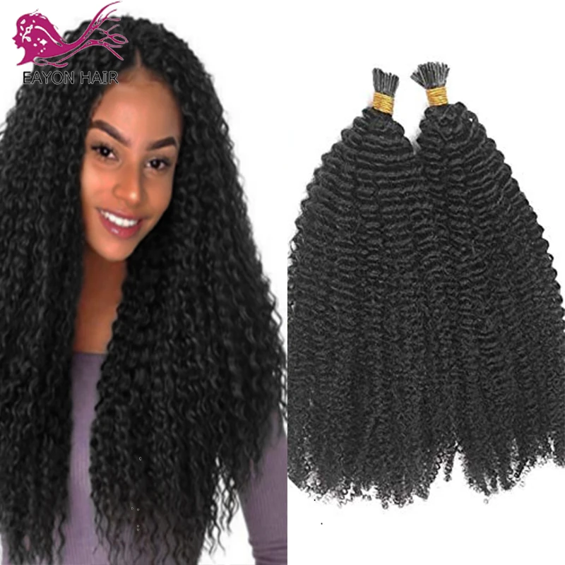 EAYON афро кудрявые I-образные волосы для наращивания волос бразиль...
