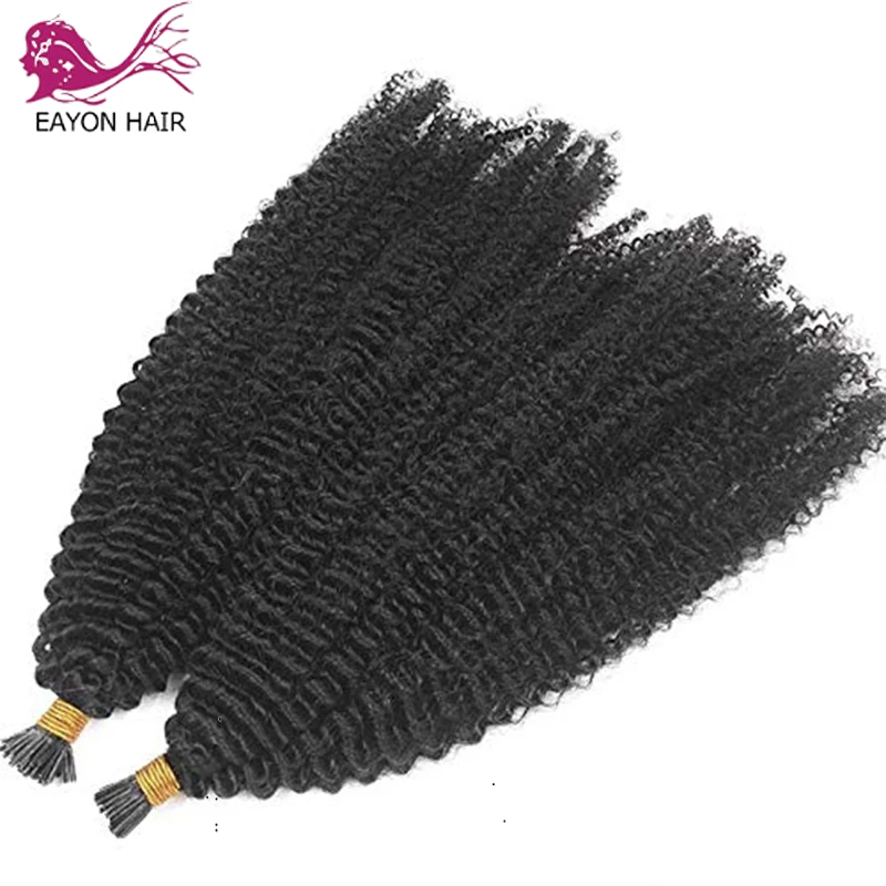 I Tip Наращивание человеческих волос афро кудрявые вьющиеся Предварительно скрепленные перуанские неповрежденные волосы с микрозвеньями кератиновая палочка I Tip волосы для черных женщин