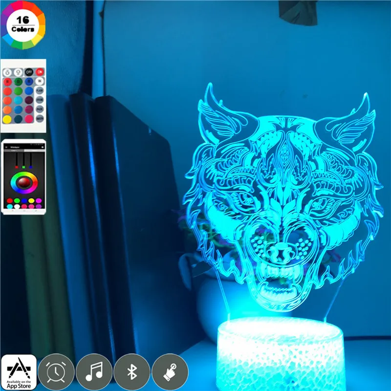 Акриловый ночник с изображением волка, 3D светодиодный светильник для клубной атмосферы, настольная лампа с лавовым основанием, меняющий цвет, ночник, подарок для детей на день рождения