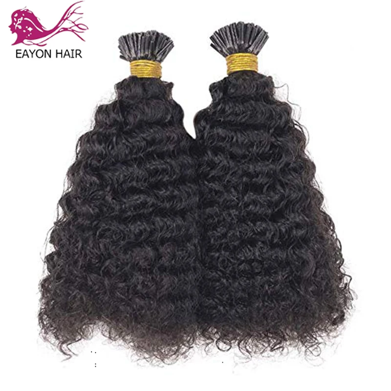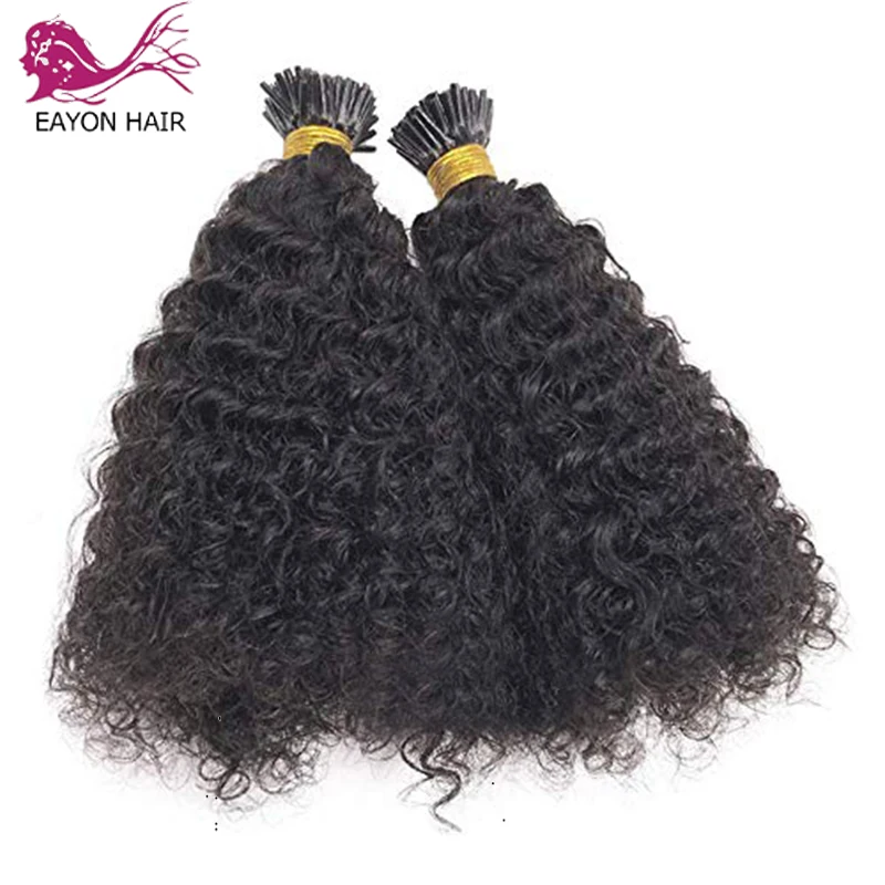 I Tip Наращивание человеческих волос афро кудрявые вьющиеся Предвар...