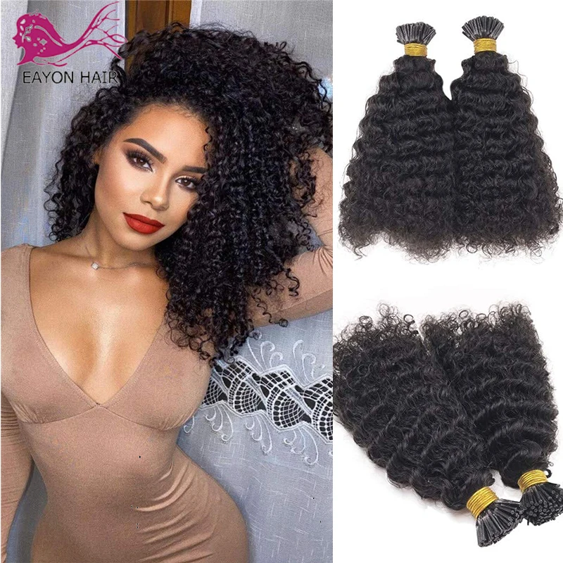 Бразильские волосы для наращивания EAYON Remy I Tip, вьющиеся керат...
