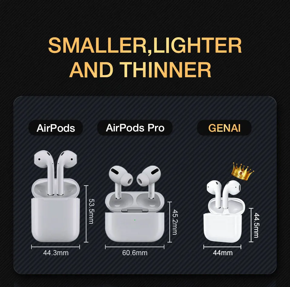 Четвертое поколение Настоящие беспроводные стерео наушники Меньше, но сильнее Качество звука без потерь/стабильное соединение/сенсорное управление/воспроизведение 24 часов