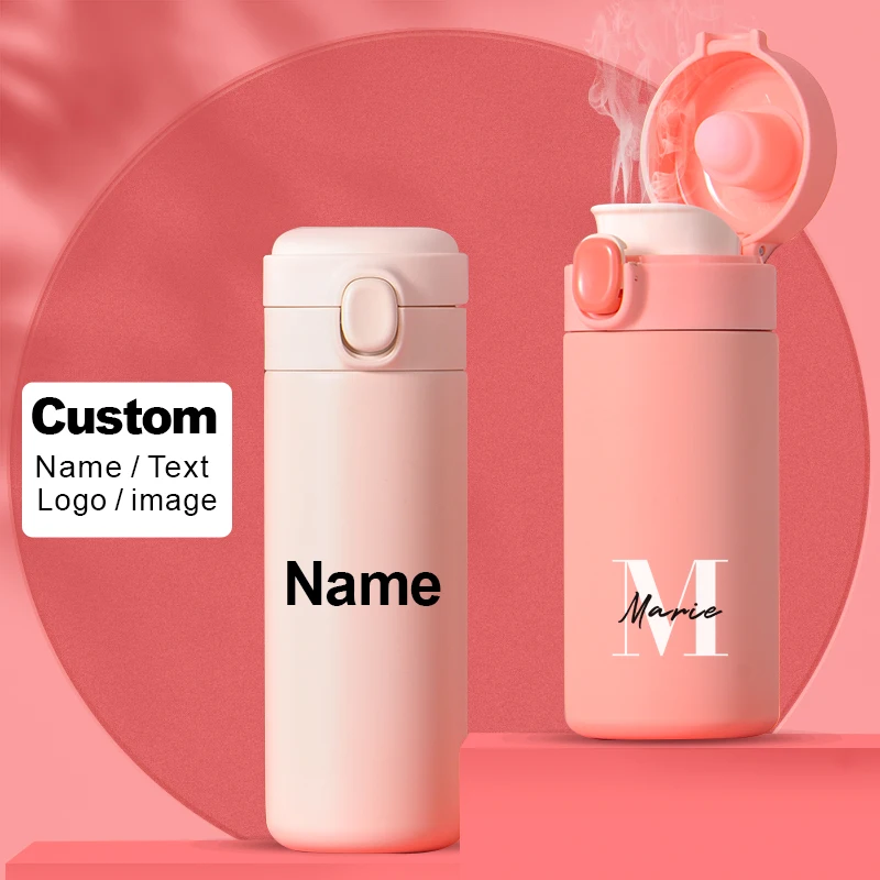 300ML400ML Портативный туристических термосов пользовательское имя Нержавеющаясталь безвоздушная бутылка Герметичная Бутылка для мальчиков подарок девушке стеклянная посуда