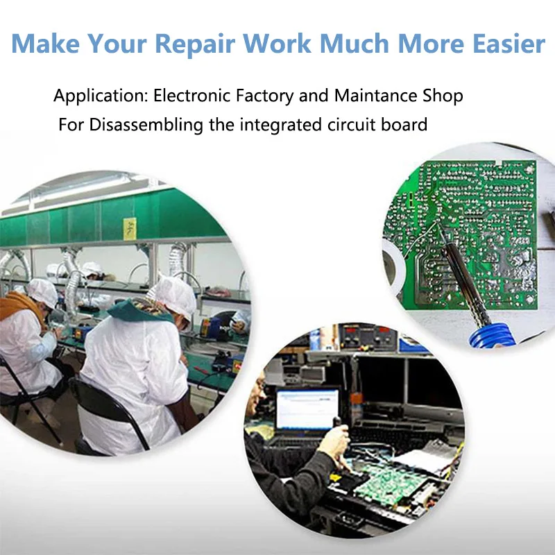 2) не чистится во время слишком большого количества оловянного шлака в трубке для хранения олова, это повлияет на всасывание пистолета, в этом чехол следует удалить оловянный шлак хвоста. Его можно снять только после того, как вы используете паяльник для нагрева олова, пока он не расплавится