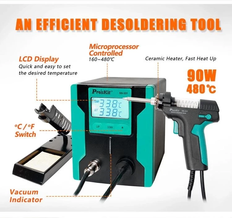 Pro'skit SS-331H ESD ЖК-дисплей цифровой электрический отсос для припоя BGA паяльная вакуумный отсос припоя пистолет состояния заданием будильника 110V/220V