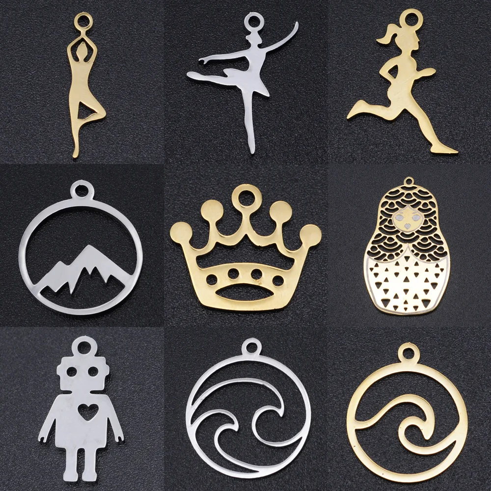 5 шт.лот подвески для бега йоги DIY Оптовая продажа 100% из нержавеющей стали волнистые горные разъемы Очаровательная Корона балета ювелирные изделия подвеска