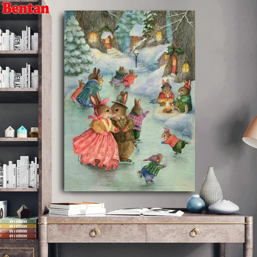 5D DIY алмазная живопись, мультяшный милый кролик, алмазная вышивка, полная квадратная круглая мозаика, вышивка крестиком, Рождественский Декор для дома