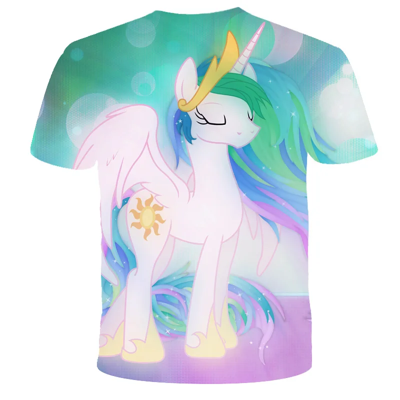 Футболка для девочек с 3D принтом, детские футболки с единорогом, м...