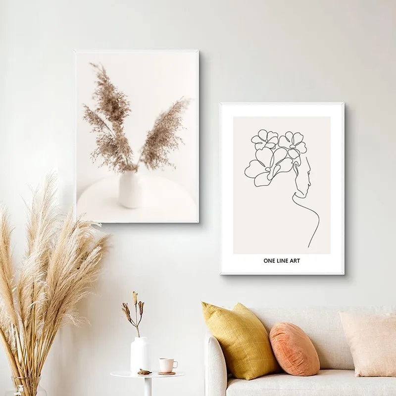 Скандинавский домашний декор, настенная Картина на холсте, бежевый ...