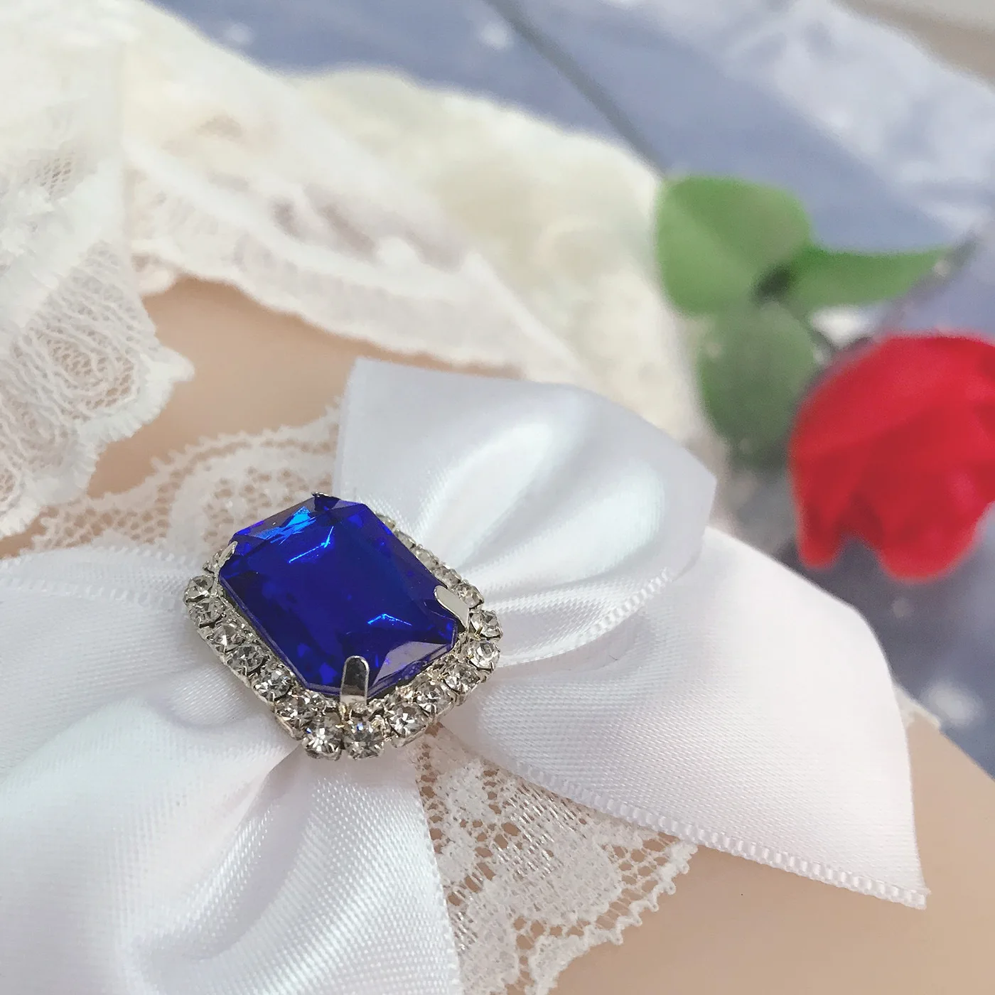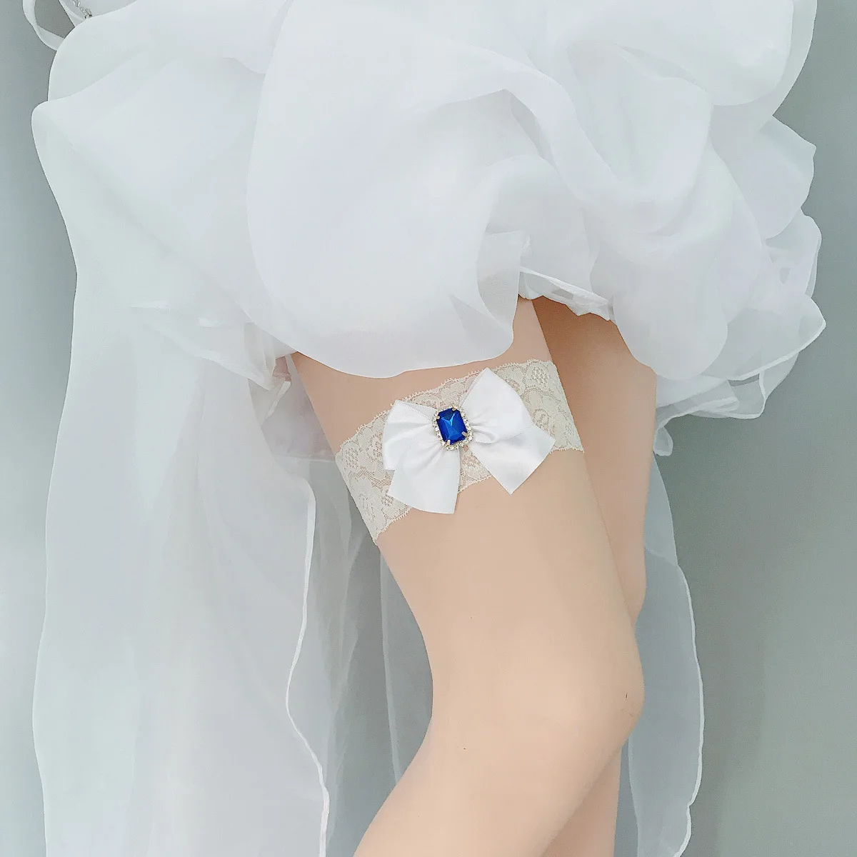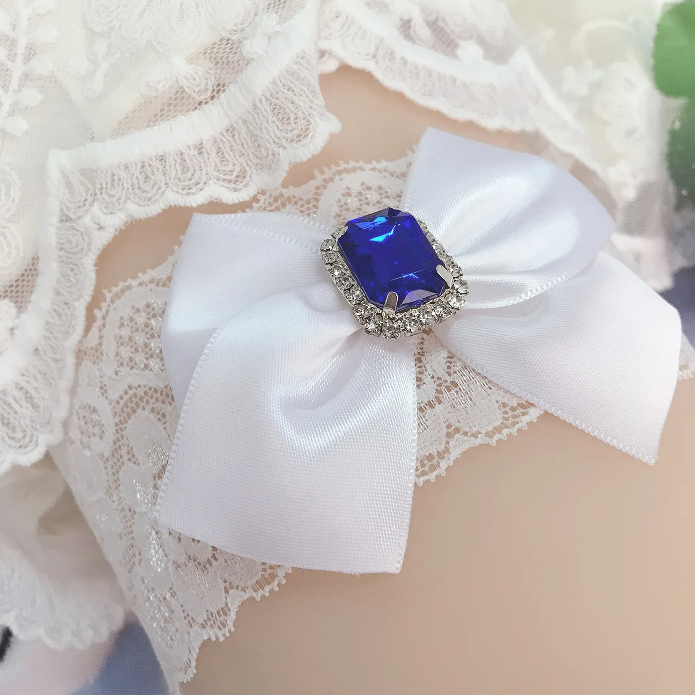 Сексуальное женское нижнее белье, белое кружевное атласное кольцо с бантом, Синие стразы, свадебная подвязка, сексуальное женское нижнее белье