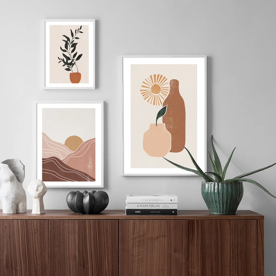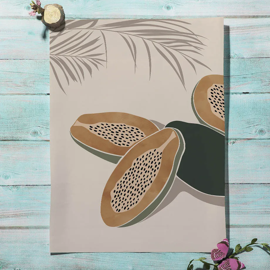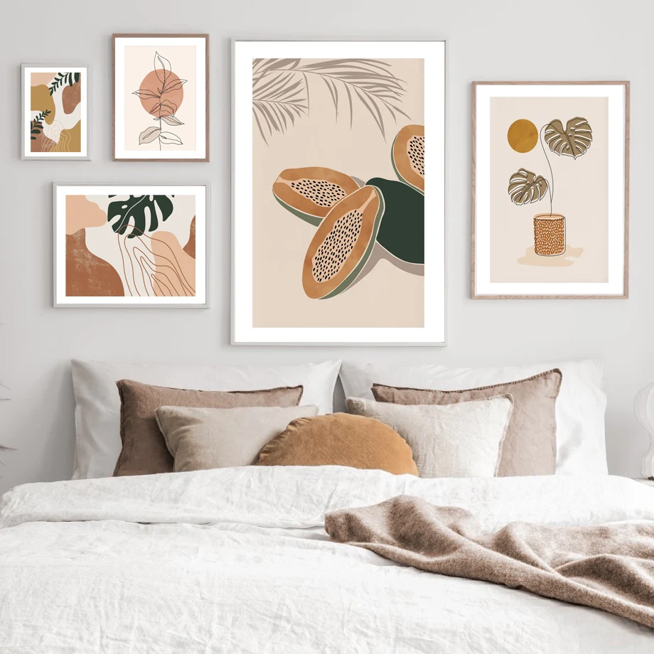 Бохо стены искусства печати холст картина абстрактная Monstera лист папайя горы солнце скандинавский плакат Настенные фотографии для декора гостиной