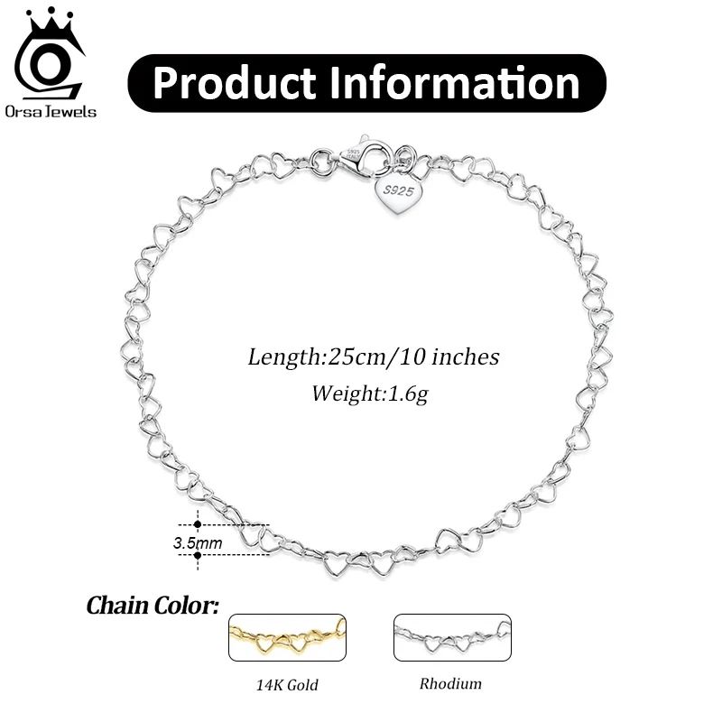 Женский браслет на ногу ORSA JEWELS из стерлингового серебра 925 пробы с цепочкой в виде сердца, модный браслет на ногу, летние сексуальные серебряные украшения на ногу SA10