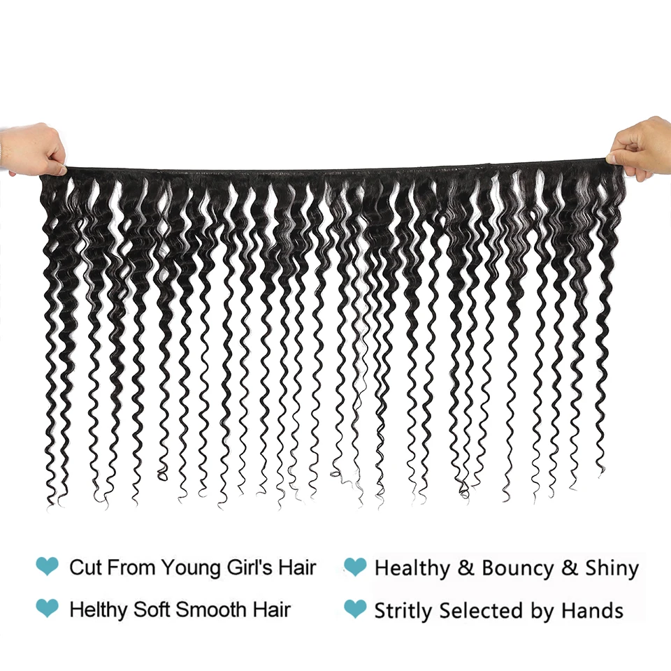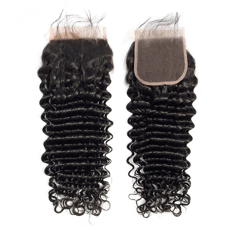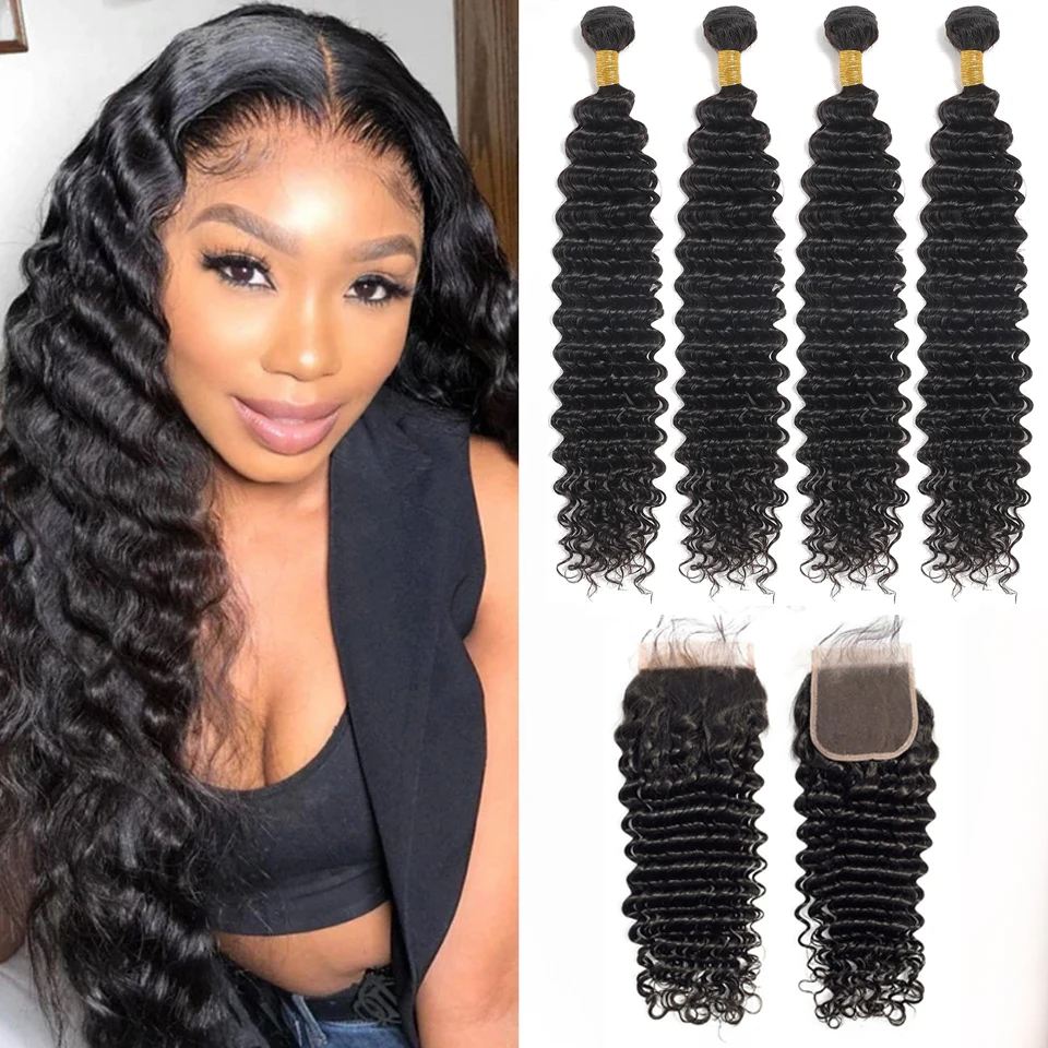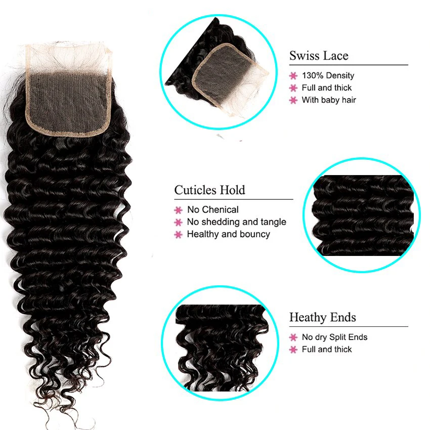 Перуанские пряди волос с глубокой волной с застежкой 34 пряди с 4 4 кружевными застежками натуральные черные натуральные волосы