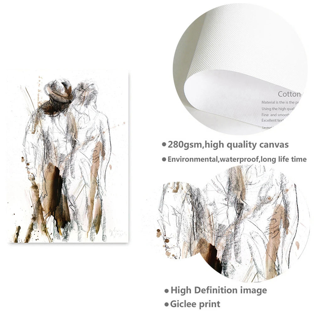 Stract парные художественные картины на холсте Черно-белая Обнаженная эскиз мужчины и женщины Плакаты Hd печать Настенная картина для украшения спальни