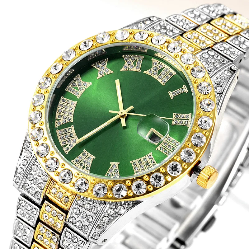 Часы мужские, синие, красные, зеленые, со стразами, в стиле хип-хоп