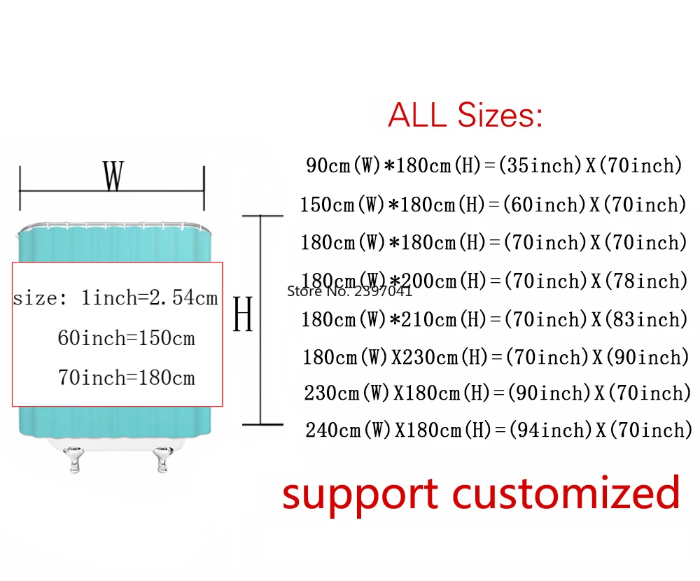 Размер душевой занавески: 90 см Ш X 180 см в (с 7 отверстиями) 150 см Ш X 180 см в (с 10 отверстиями) 180 см Ш X 180 см в (с 12 отверстиями) 180 см Ш X 200 см в (с 12 отверстиями) 180 см Ш X 210 см в (с 12 отверстиями) 180 см Ш X 240 см в (С 12 отверстиями) 230 см Ш X 180 см в (с 15 отверстиями) 240 см Ш X 180 см в (с 16 отверстиями) 1. Изготовлен из 100% полиэстера; Антибактериальный, водонепроницаемый, устойчивый к плесени, безопасный и экологически чистый 2. Размер 70x70 дюймов (180*180 см) (настраиваемый размер) легко повесить 12 пластиковых крючков 3. Новая, смелая и не маркирующая мода, Индивидуальность, Ретро стиль, простой, милый, красочный, без пигментов вредит здоровью вашей семьи, подходит для молодых людей и детей 4. Машинная стирка, ручная стирка, холодная стирка, естественная сушка