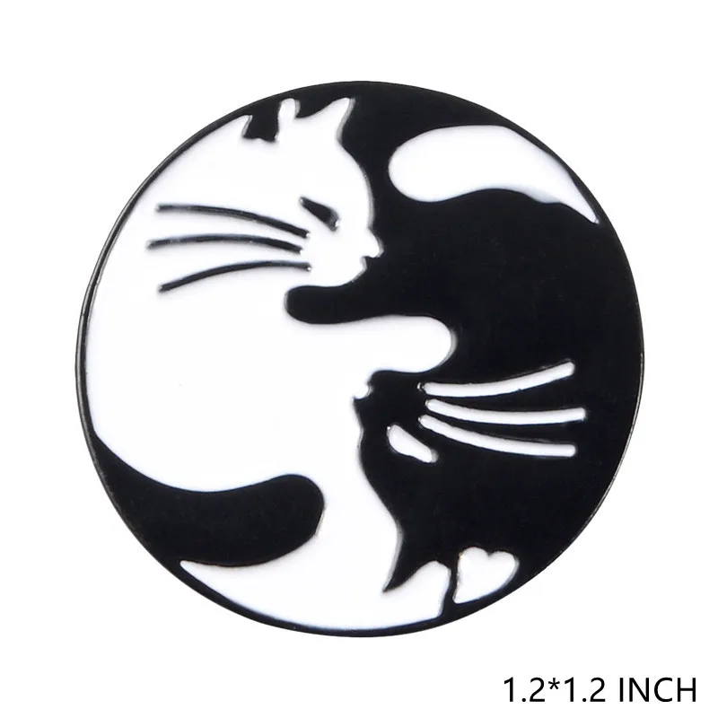 Женская брошь кошка Инь Янь чёрная белая брошь с двумя кошками