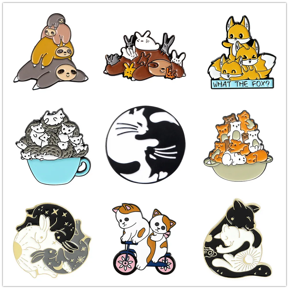 Животные семья эмаль булавки милые кошки нагрудные значки для одежды кролик ювелирные броши на воротник подарки аксессуары для друзей сумки