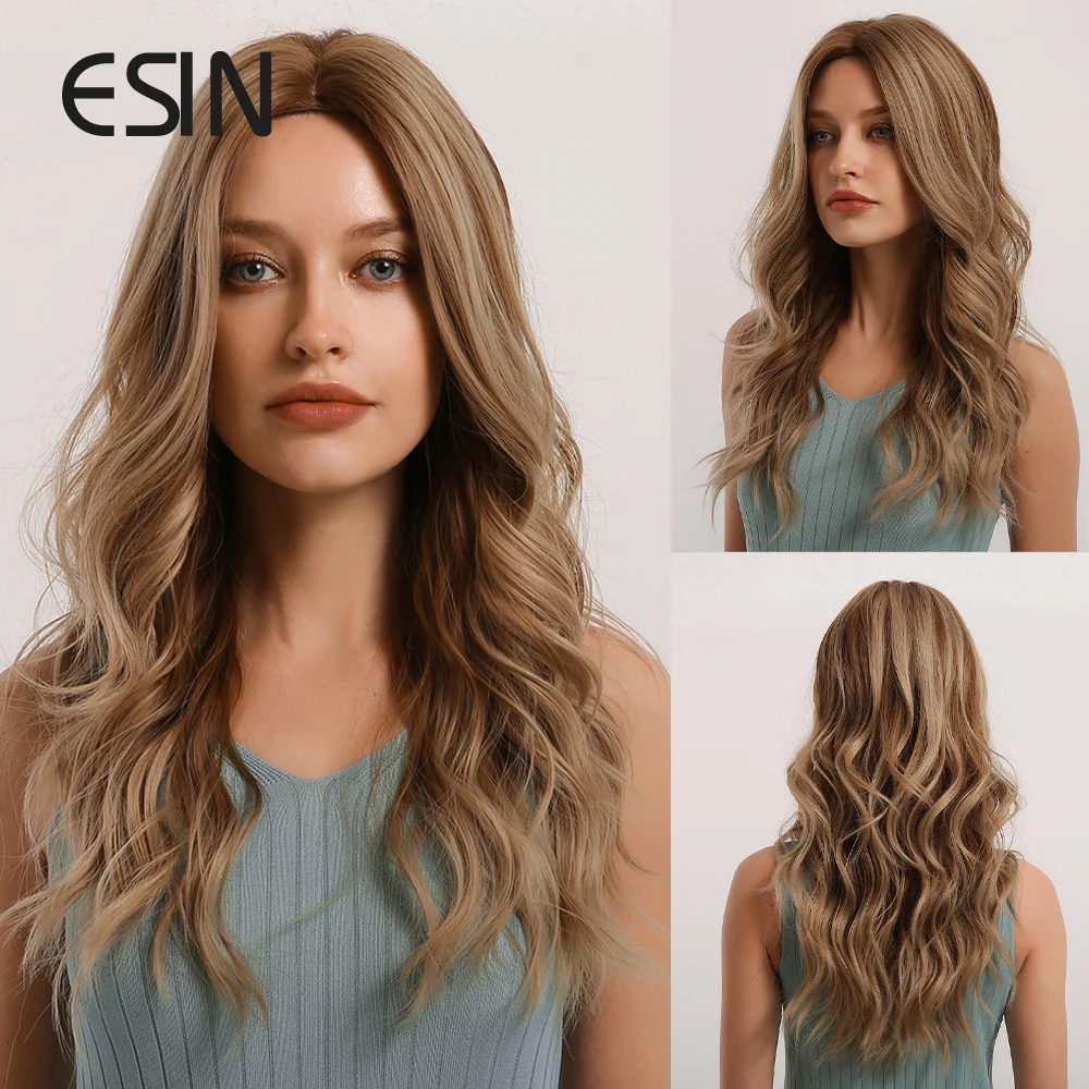 ESIN синтетический коричневый Омбре для блонд длинные завитые волнистые парики с термостойкими вьющимися натуральными волосами для женщин