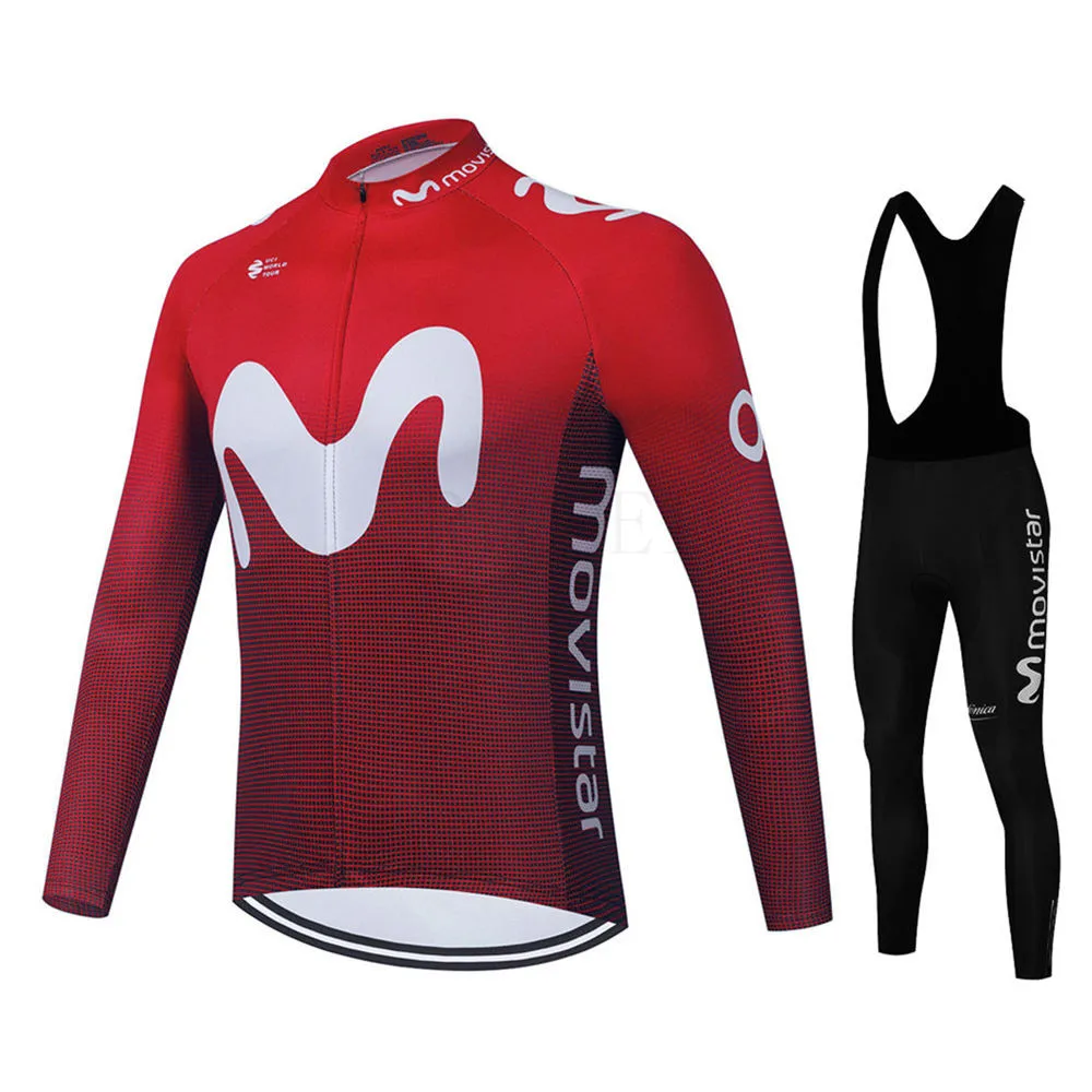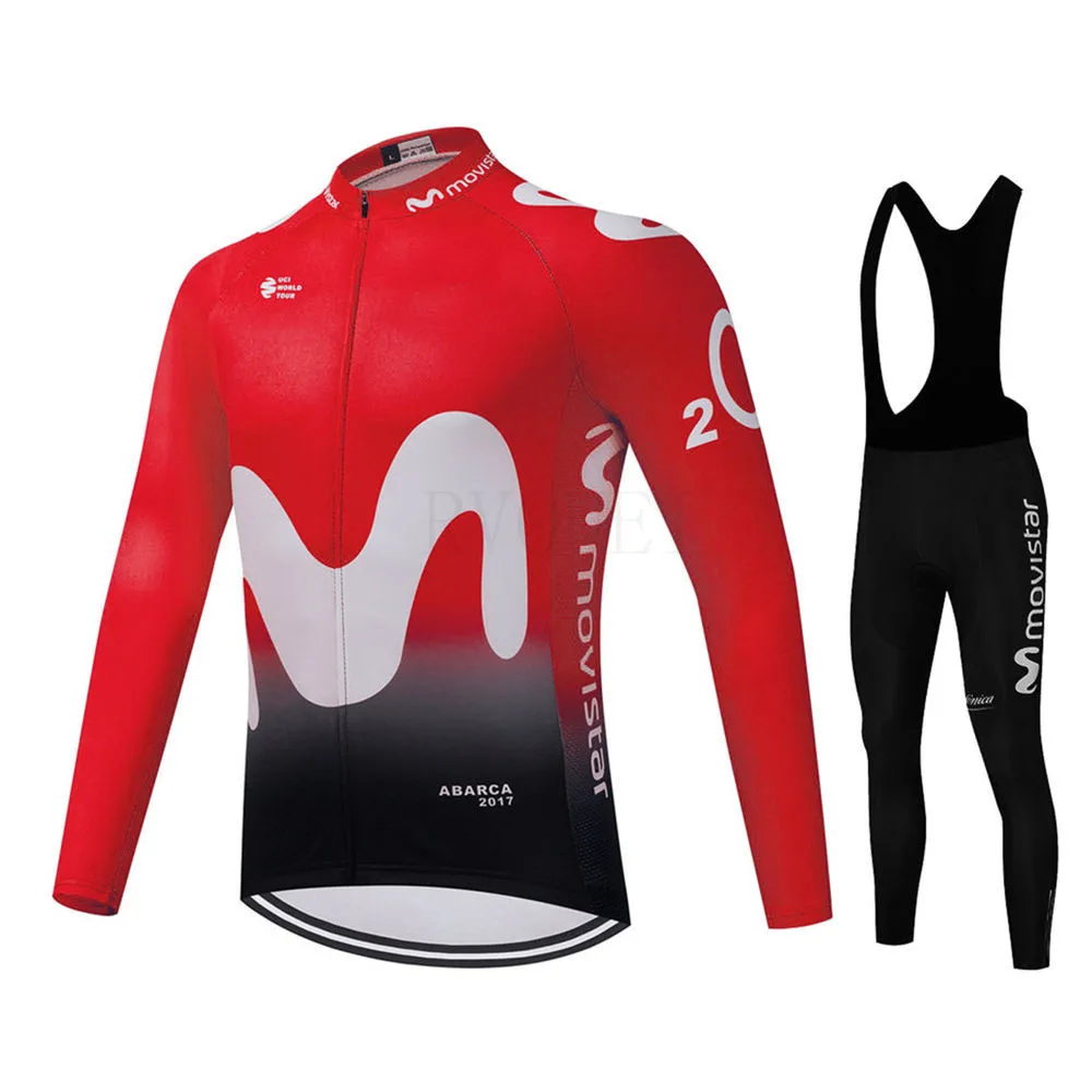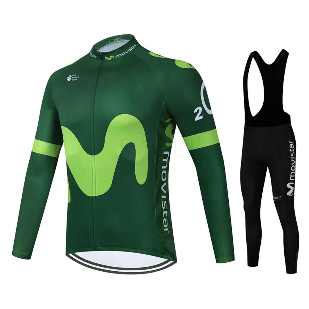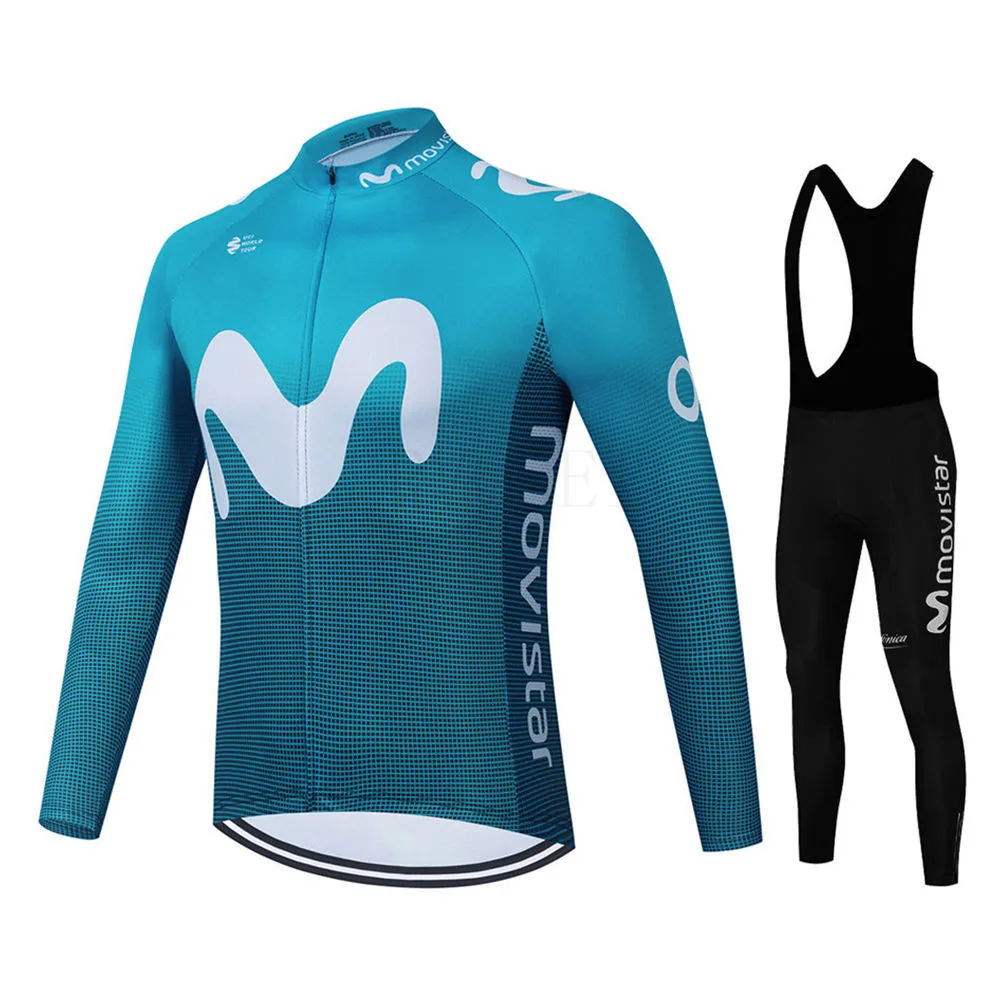 Осенний комплект велосипедной одежды Movistar из Джерси с длинным рукавом, брюки-комбинезон, одежда для велоспорта, трикотажная одежда для горного велосипеда, мужская одежда