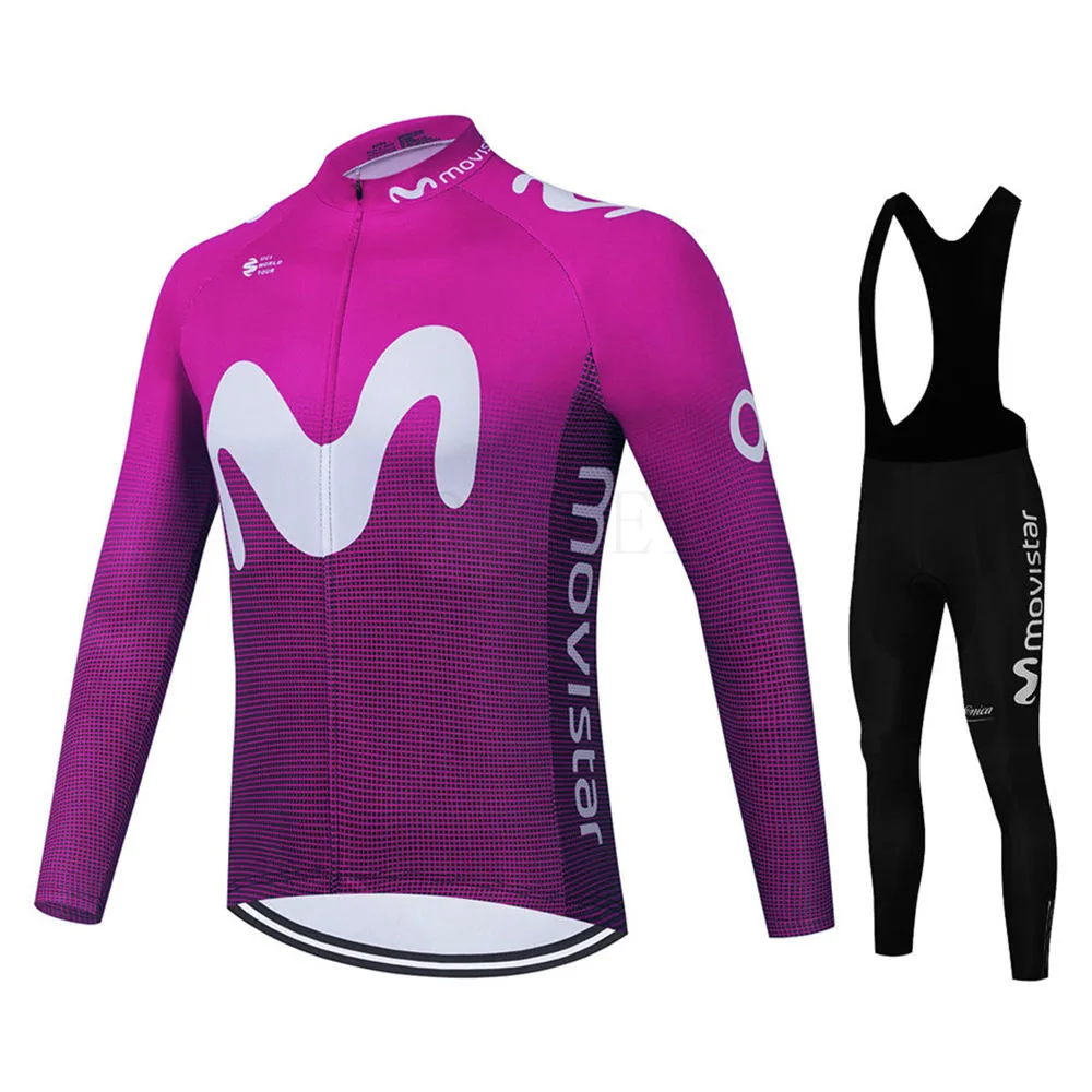 Комплект одежды для велоспорта Movistar, зимняя куртка с длинным ру...