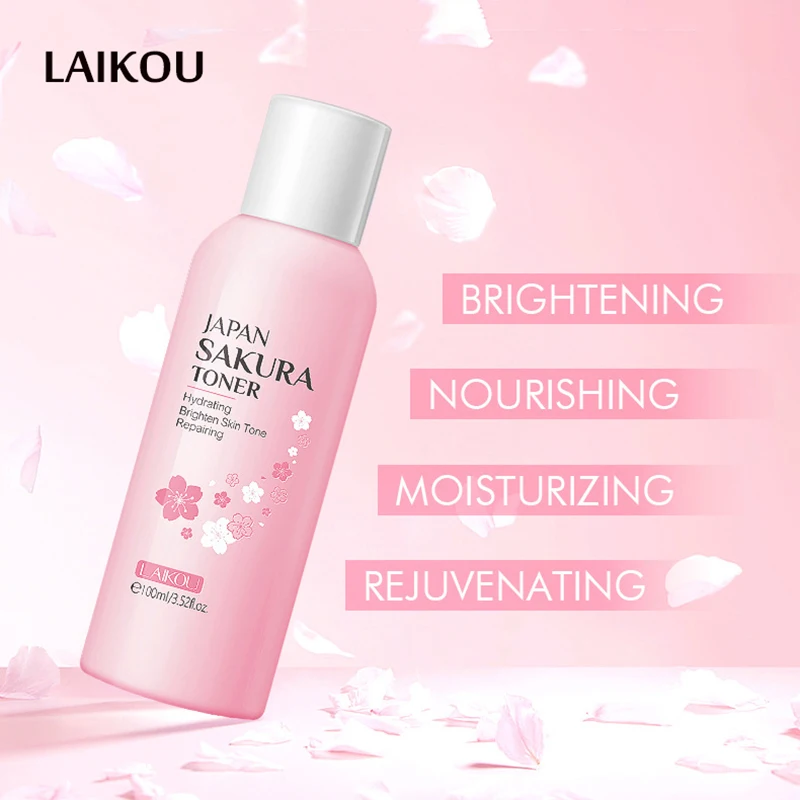 Тоник LAIKOU Japan Sakura богат экстрактом цветов Prunus Lannesiana и ниацинамидом, который может восстанавливать поврежденную кожу, уменьшать пятна и осветлять тон кожи. С натуральным увлажняющим ингредиентом гиалуроната натрия, он может пополнять влагу для кожи глубоко, сделать кожу чувствовать себя водянистой и эластичной.