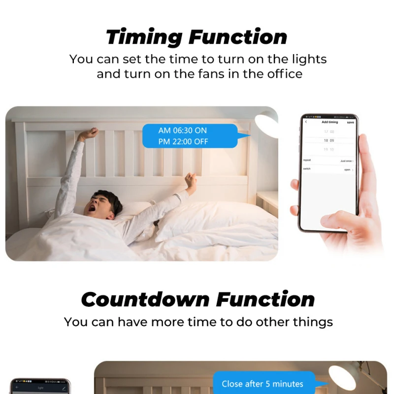 [Управление мобильным приложением] Управляйте переключателем, синхронизацией, обратным отсчетом и другими функциями устройства через мобильный телефон