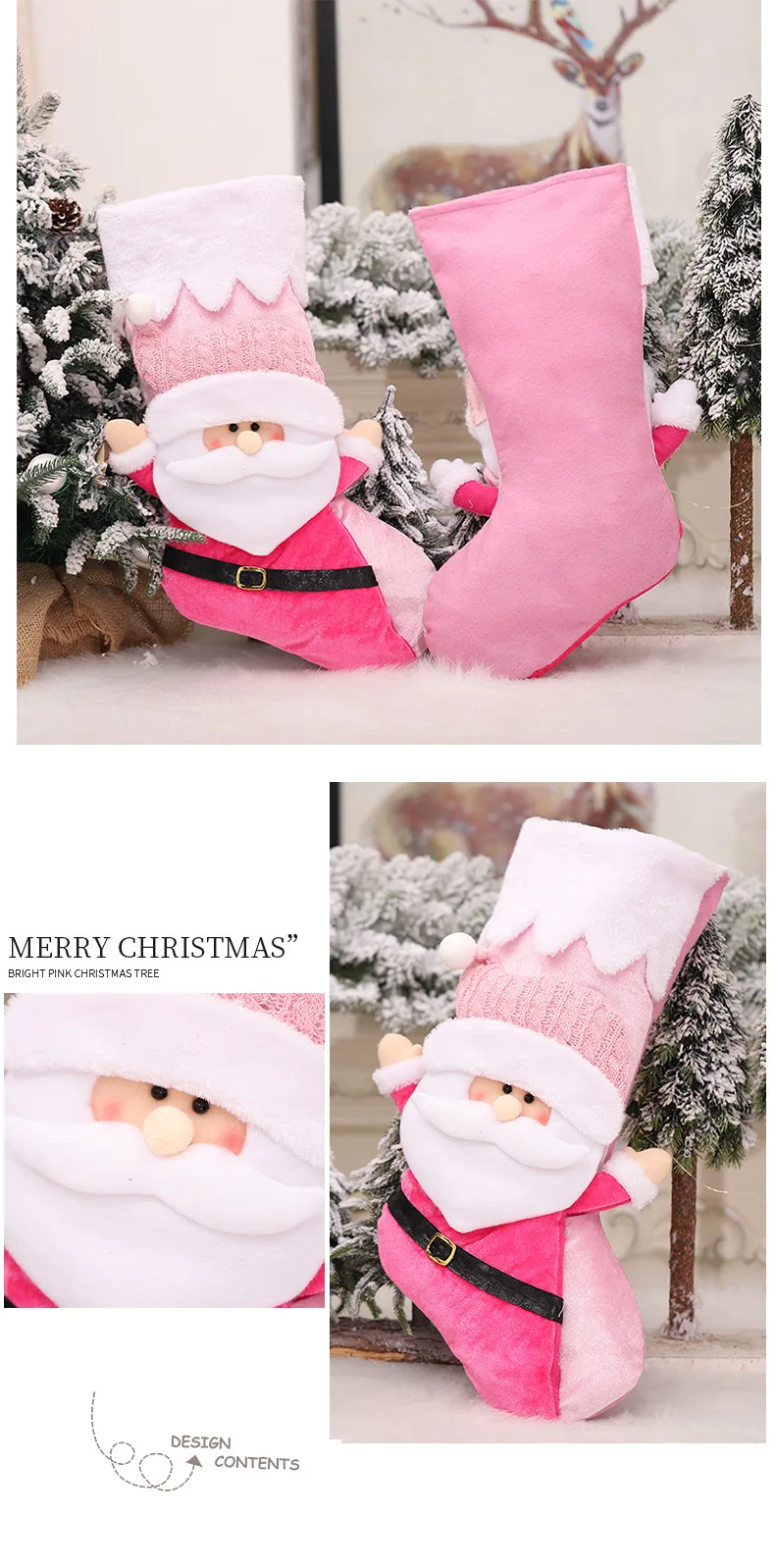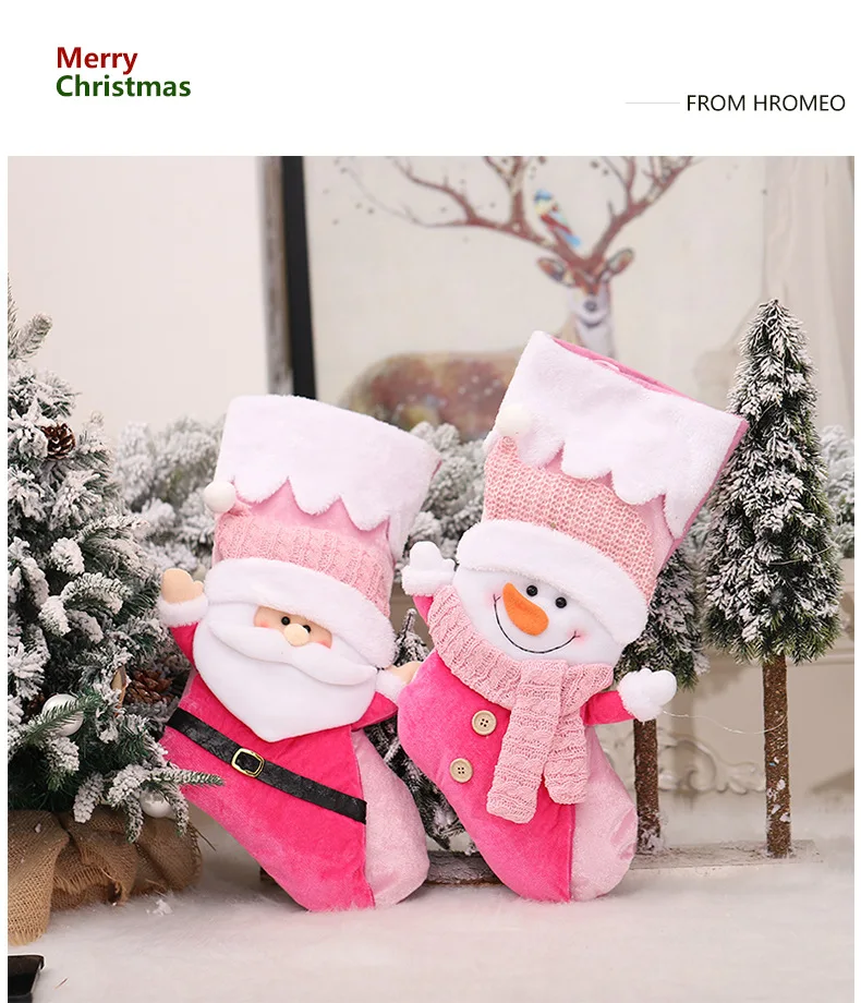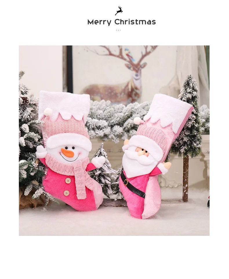 Рождественские чулки Adornos Navidad 2022, розовые тканевые носки, подарок для детей, мешок для конфет, карман в виде снеговика