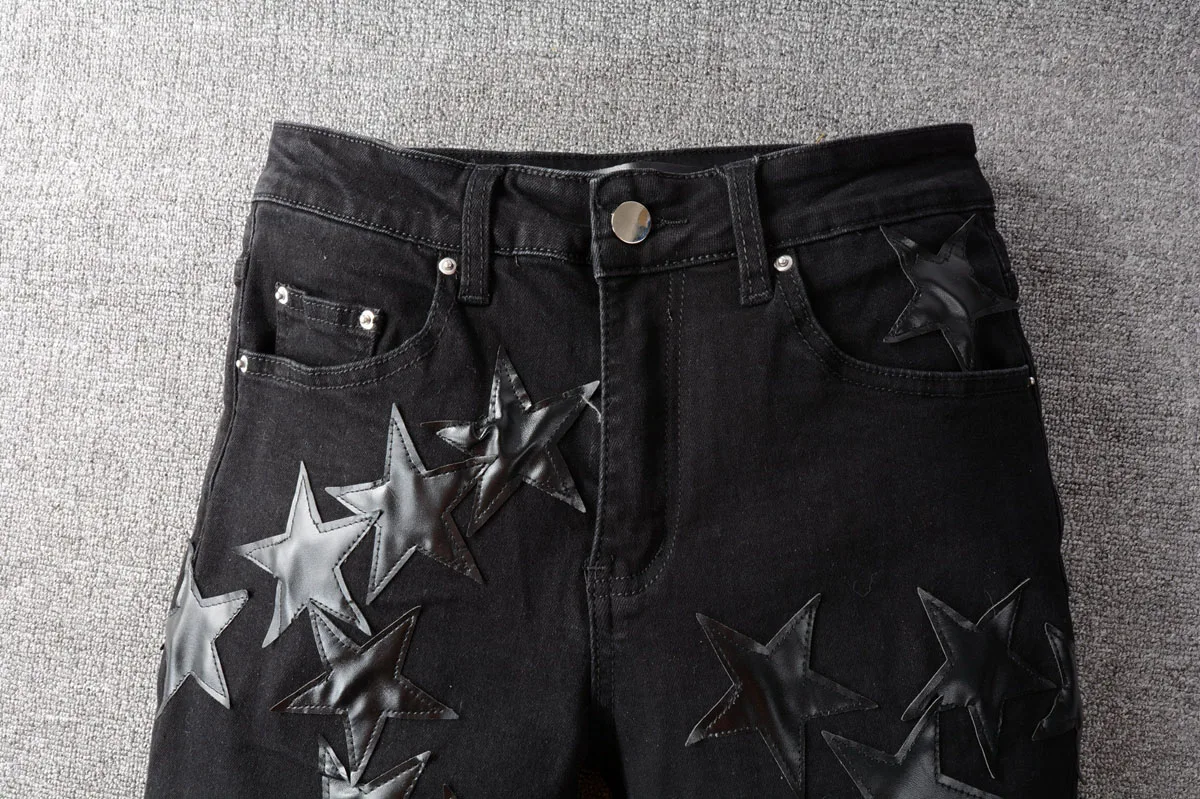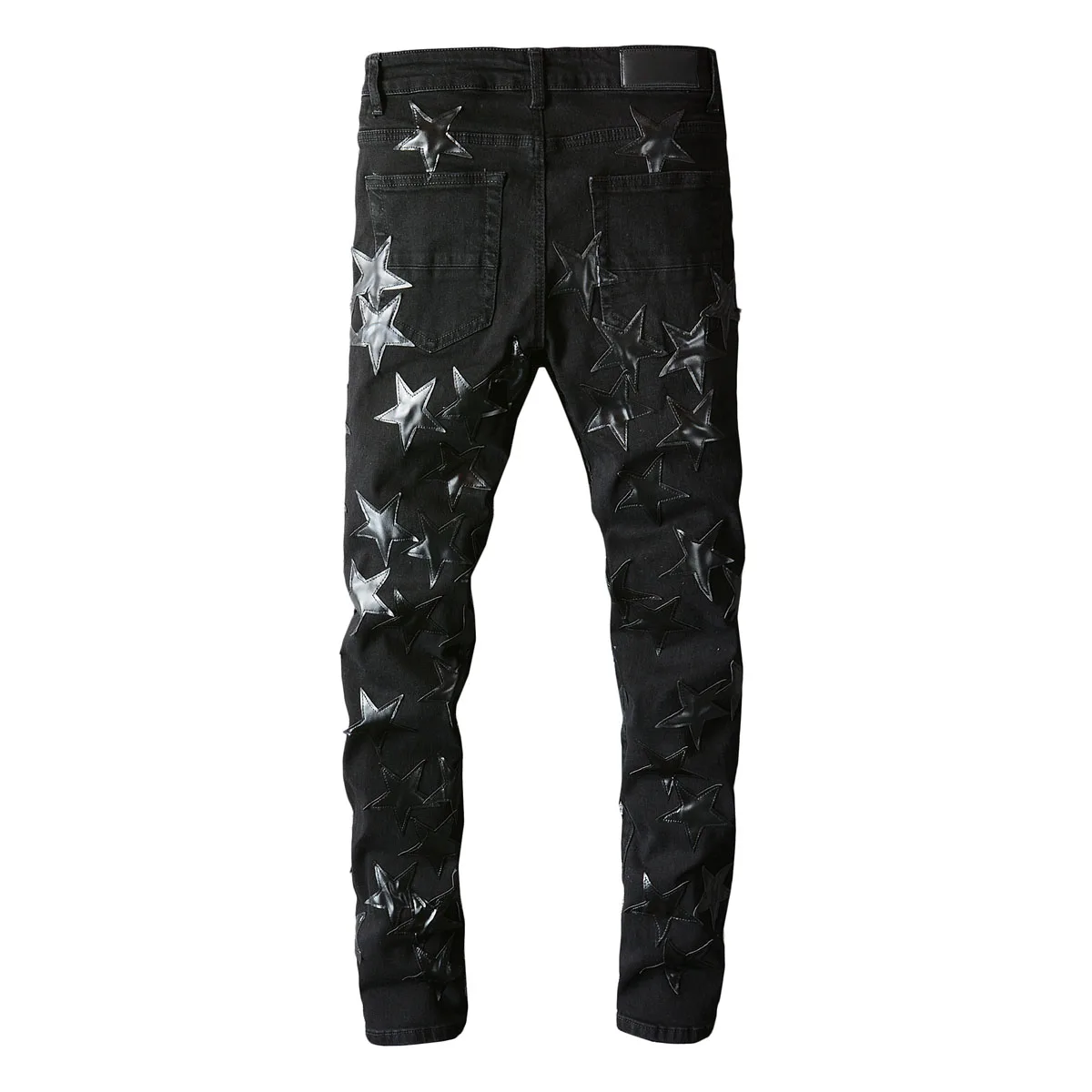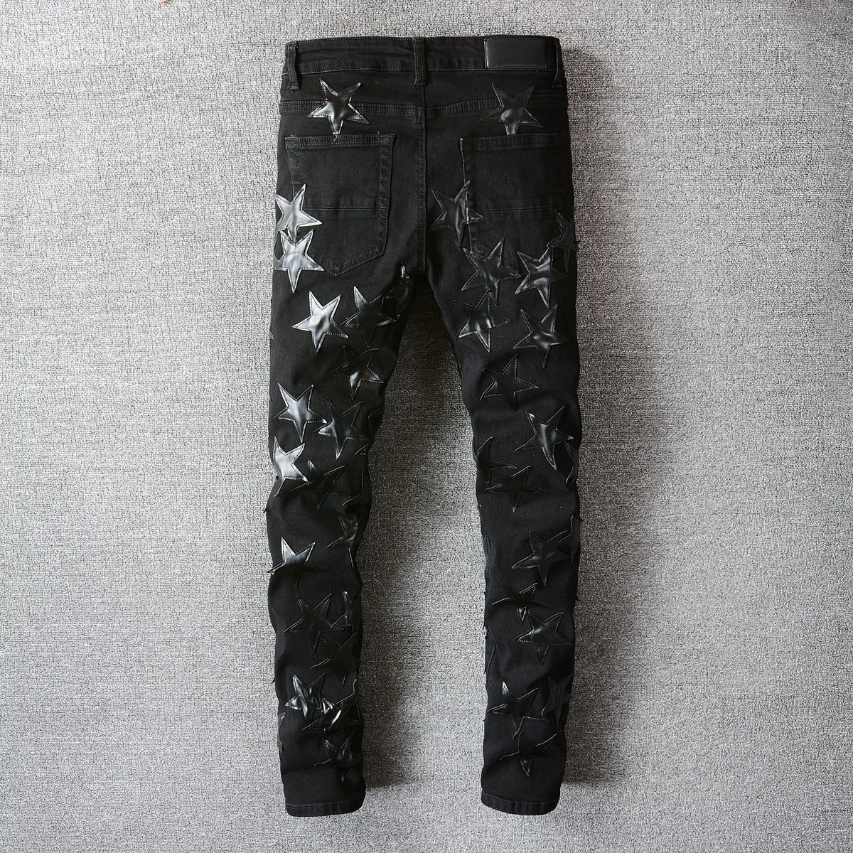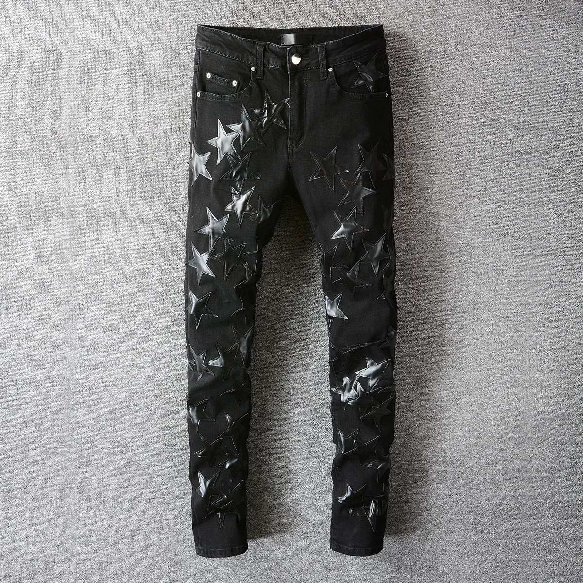 Мужские джинсы, черные рваные джинсы со звездами, с заплатками, модель 2021, уличные джинсы, зауженные джинсовые брюки, 691