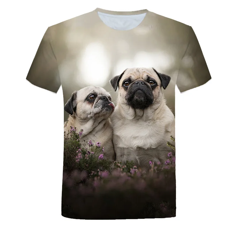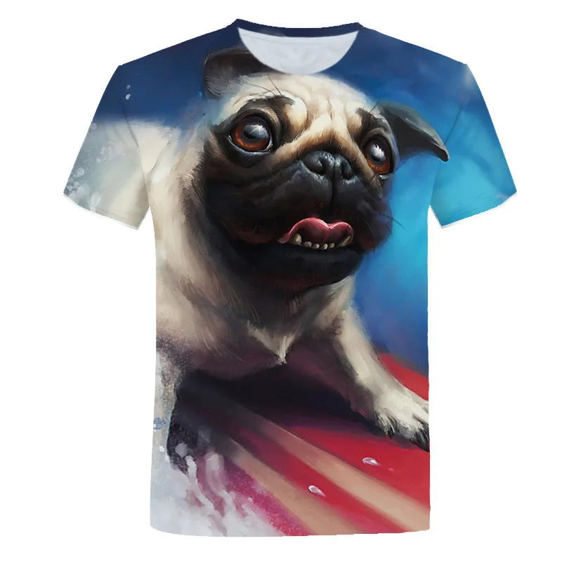 Летние футболки с животными для мальчиков и девочек, детские топы с красочными собаками, футболка, милая детская футболка с 3D-принтом, детская одежда оверсайз с краской
